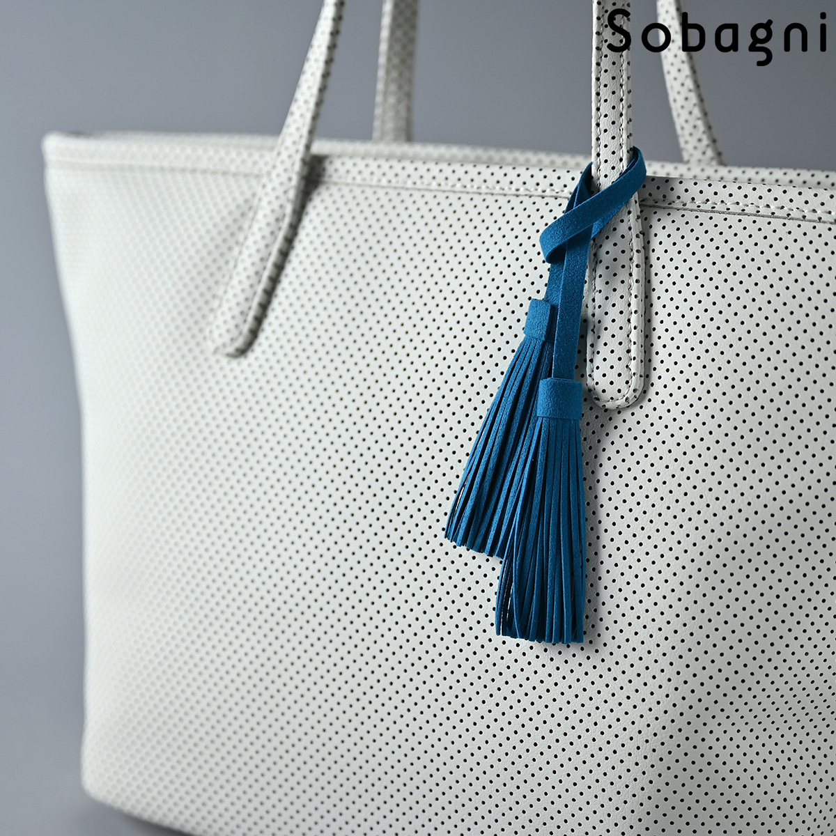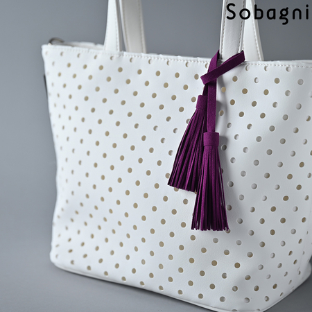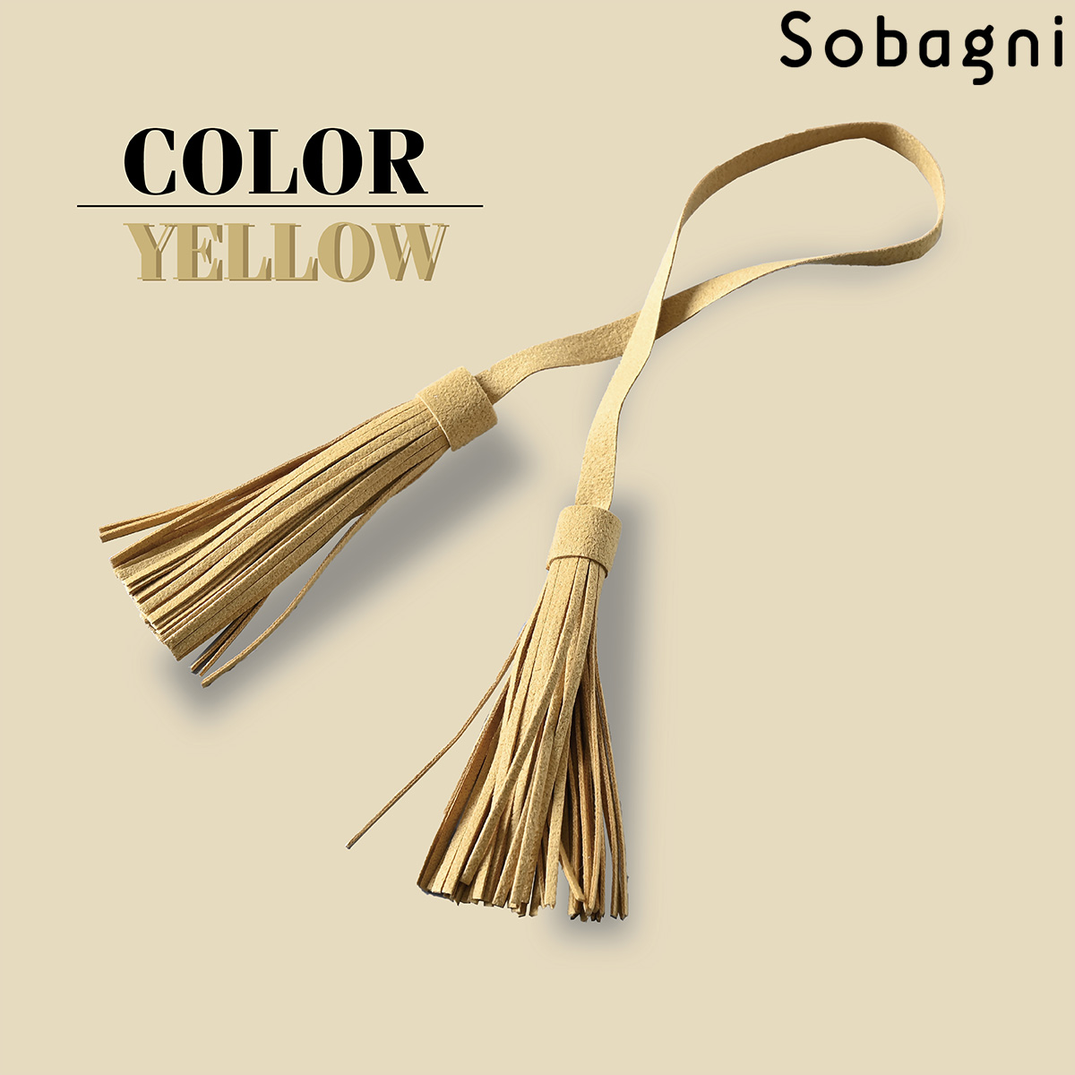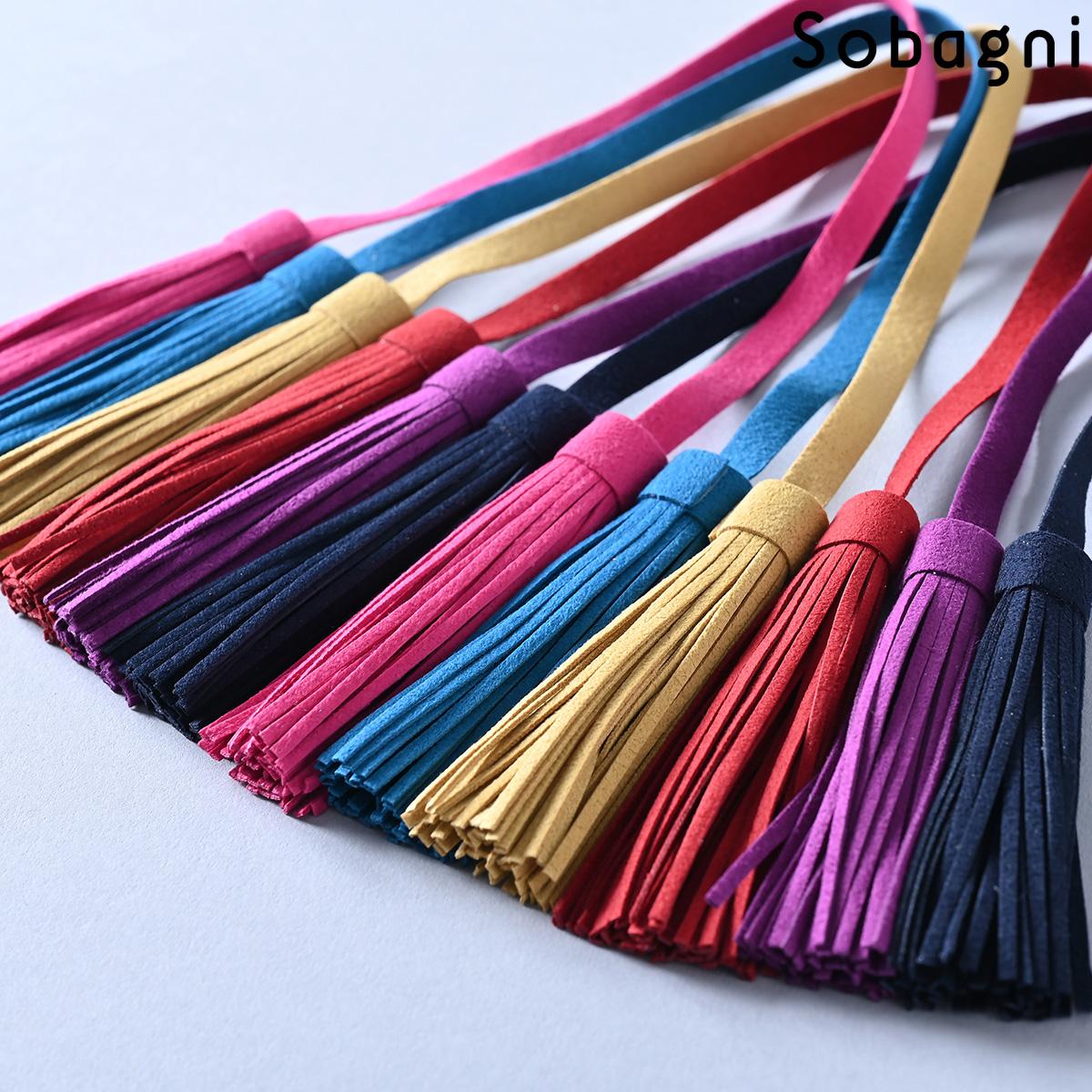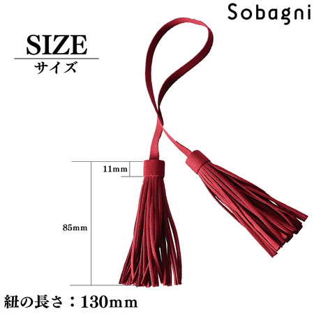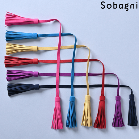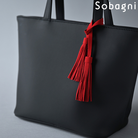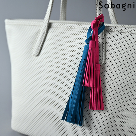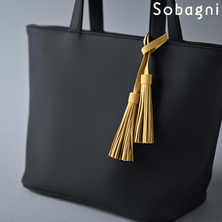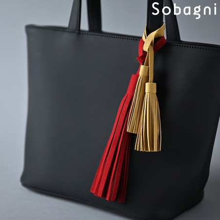 Sobagniで仕立てたフリンジチャームは、繊細なタッチと耐久性を兼ね備えた素材で上品なルックスと手触りが魅力。