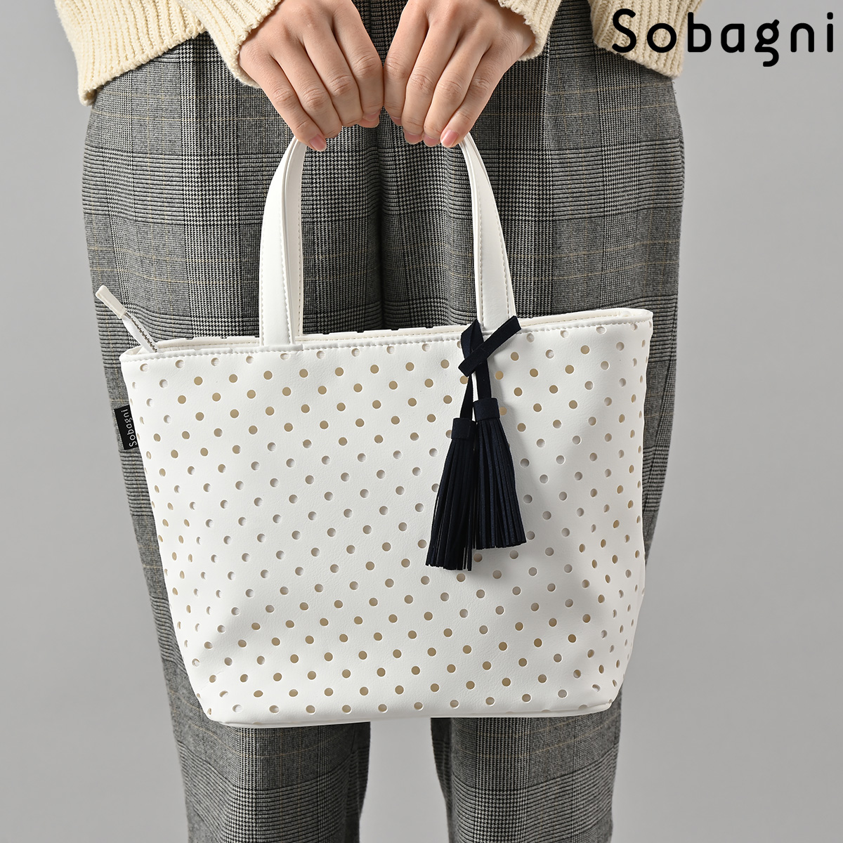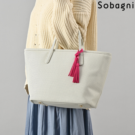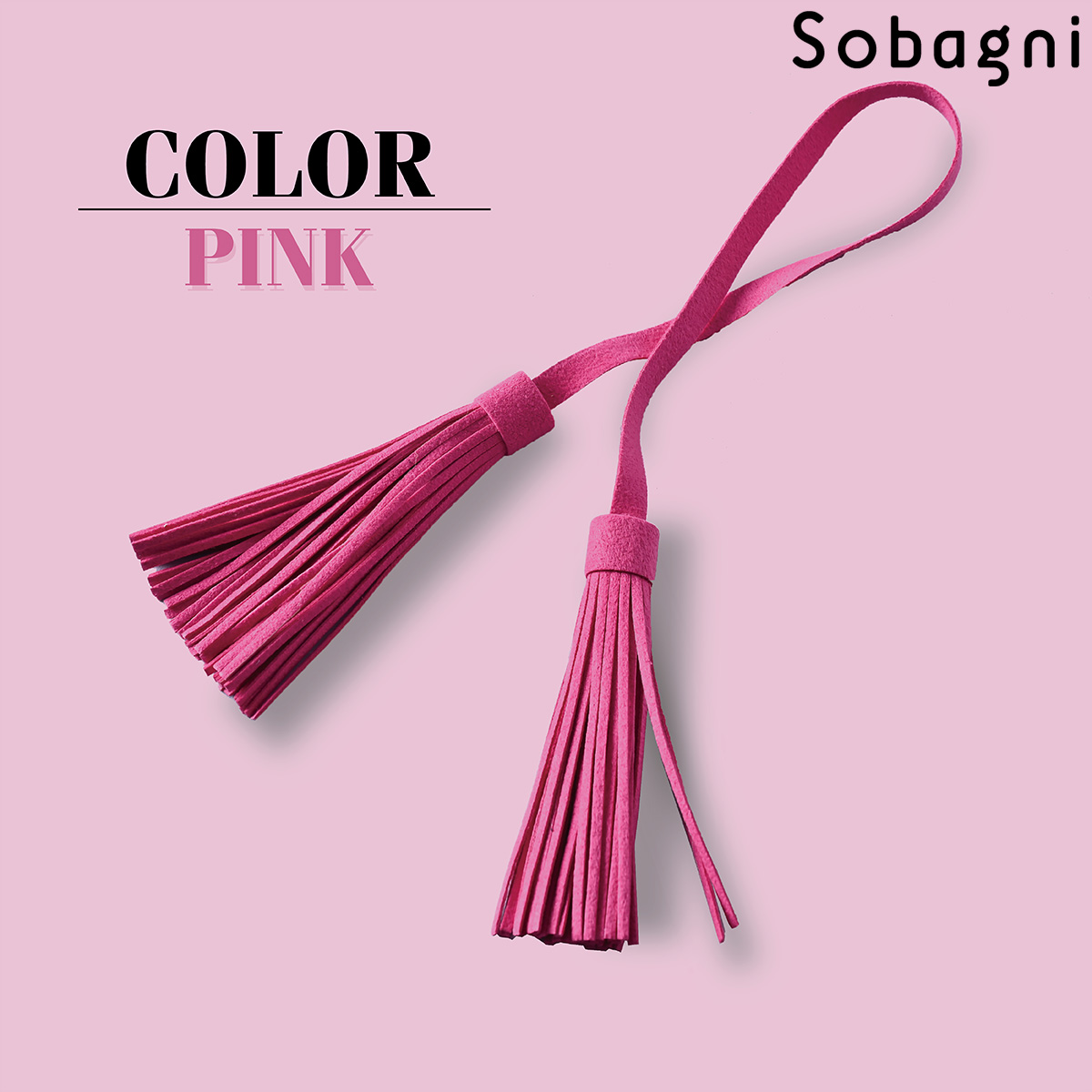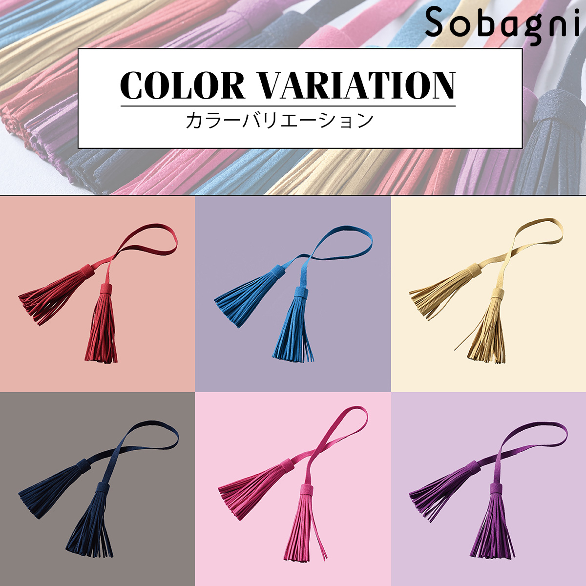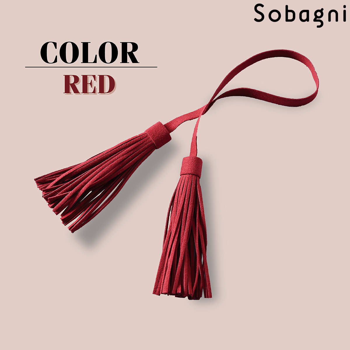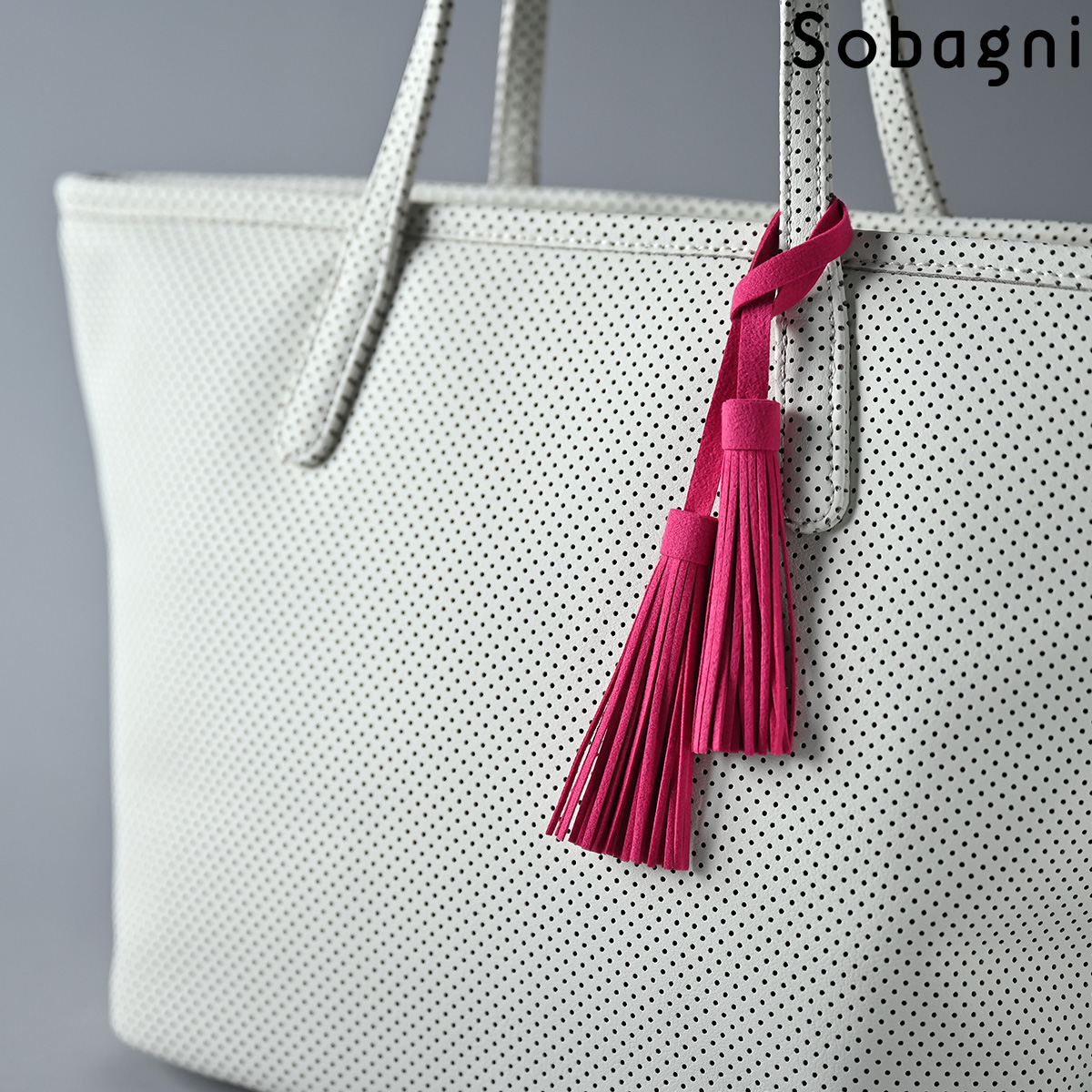 Sobagniで仕立てたフリンジチャームは、繊細なタッチと耐久性を兼ね備えた素材で上品なルックスと手触りが魅力。