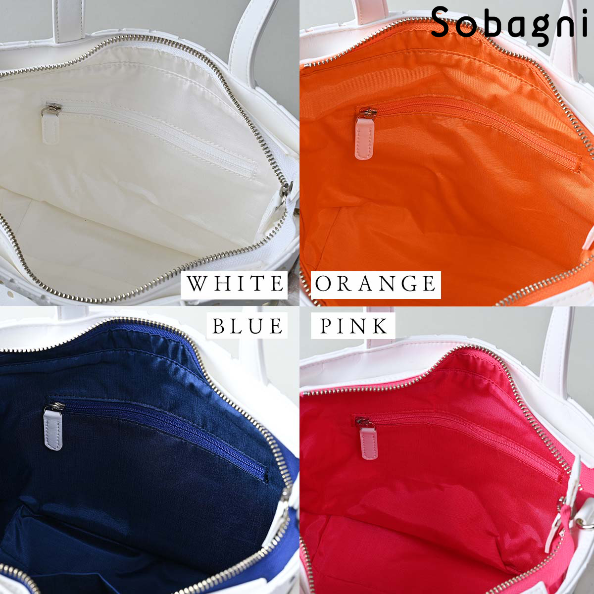 ファッションを選ばずさまざまなシーンで使いやすいホワイトと、ファスナーや内生地の色でオシャレに決まるオレンジ・ピンク・ネイビーのカラーシリーズをご用意しました。パンチングの穴からのぞくカラーは、角度によって表情豊かに引き立ちます。