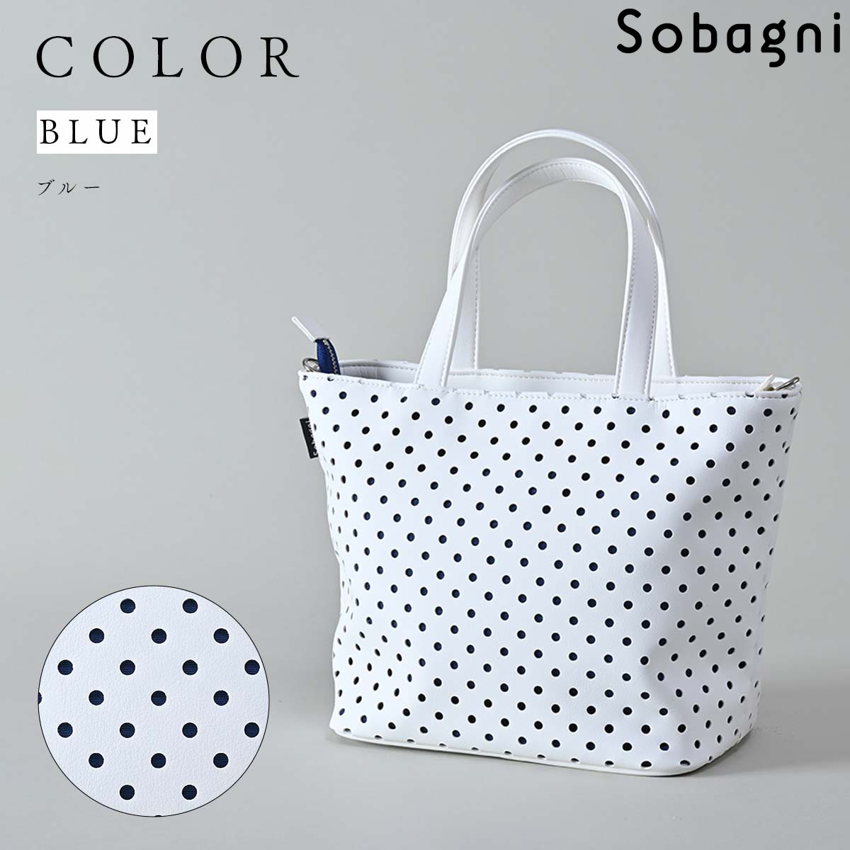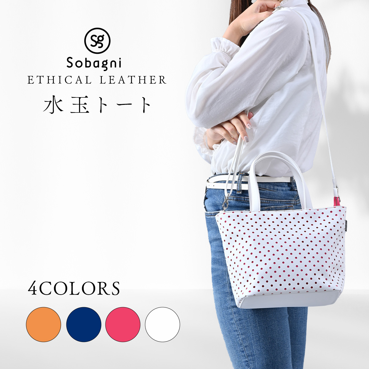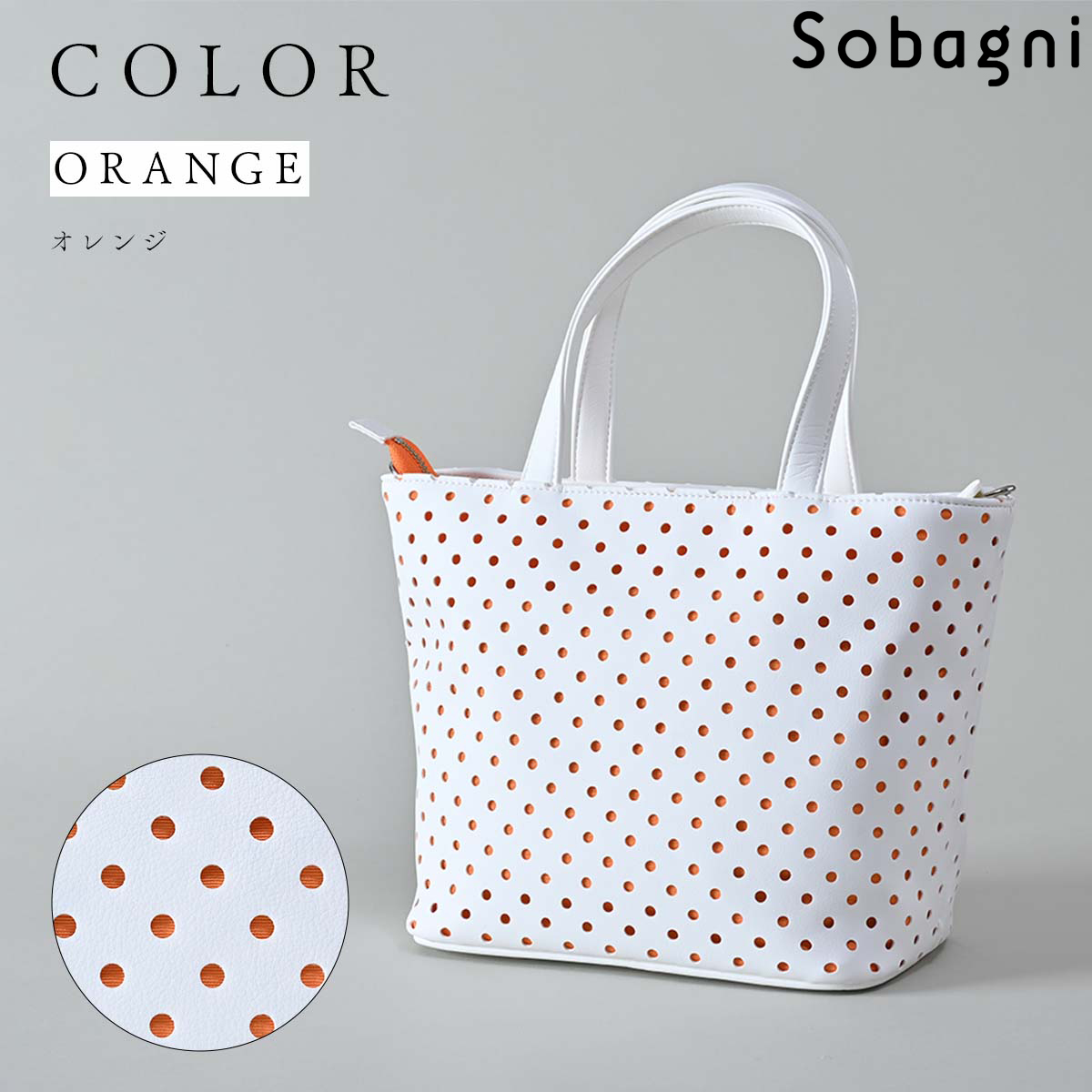 ソバニ公式 水玉トート トートバッグ ファスナー付きトート 肩掛け 合皮 国産エシカル合皮 撥水 防水 防汚 お手入れ簡単 汚れに強い 日本製 合皮 合成皮革 ギフト 送料無料 ホワイト ネイビー オレンジ ピンク ヴィーガンファッション