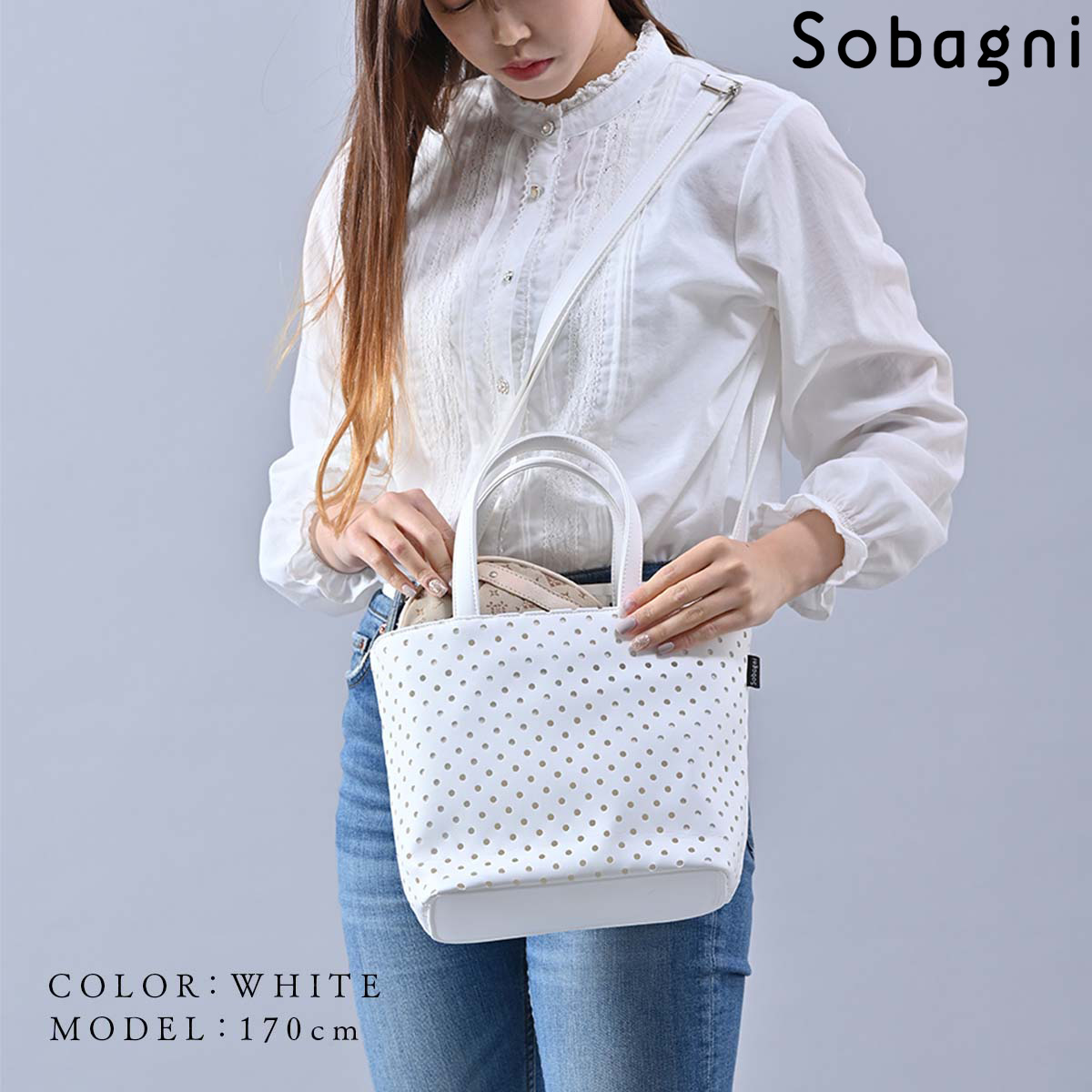 ソバニ公式 水玉トート トートバッグ ファスナー付きトート 肩掛け 合皮 国産エシカル合皮 撥水 防水 防汚 お手入れ簡単 汚れに強い 日本製 合皮 合成皮革 ギフト 送料無料 ホワイト ネイビー オレンジ ピンク ヴィーガンファッション