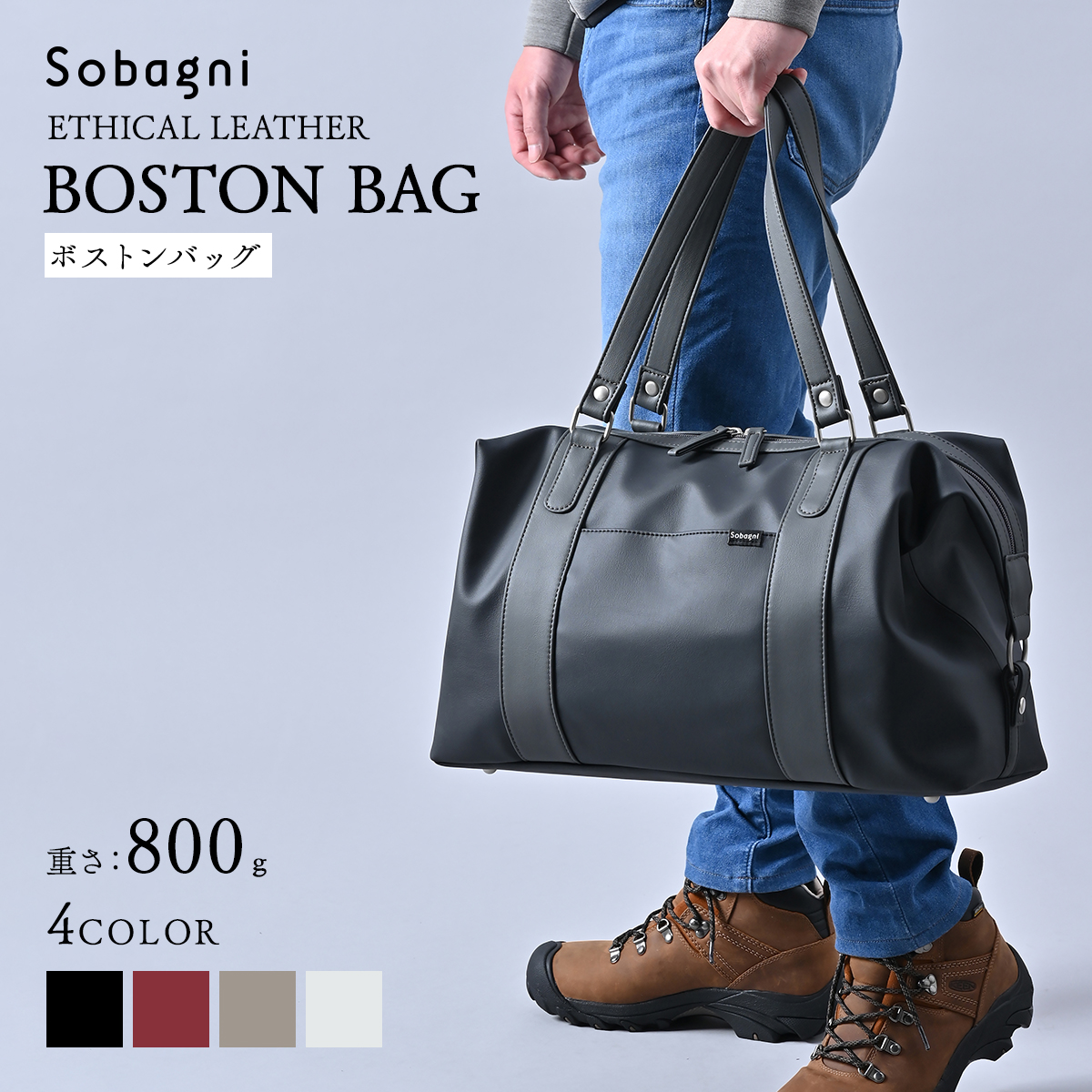 ソバニ公式 ボストンバッグ 旅行 出張 宿泊 大容量 軽量 スポーツバッグ ジムバッグ ゴルフバッグ ビジネスバッグ 日本製 エシカル合皮 高耐久 撥水 防水 防汚 雨の日も安心 お手入れ簡単 合皮 送料無料 黒 赤 白 ベージュ 旅行 ヴィーガンファッション