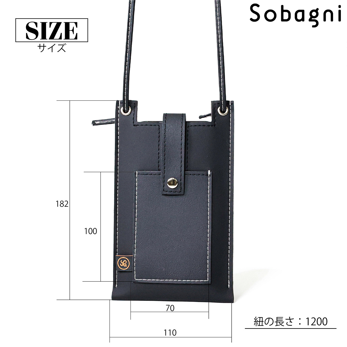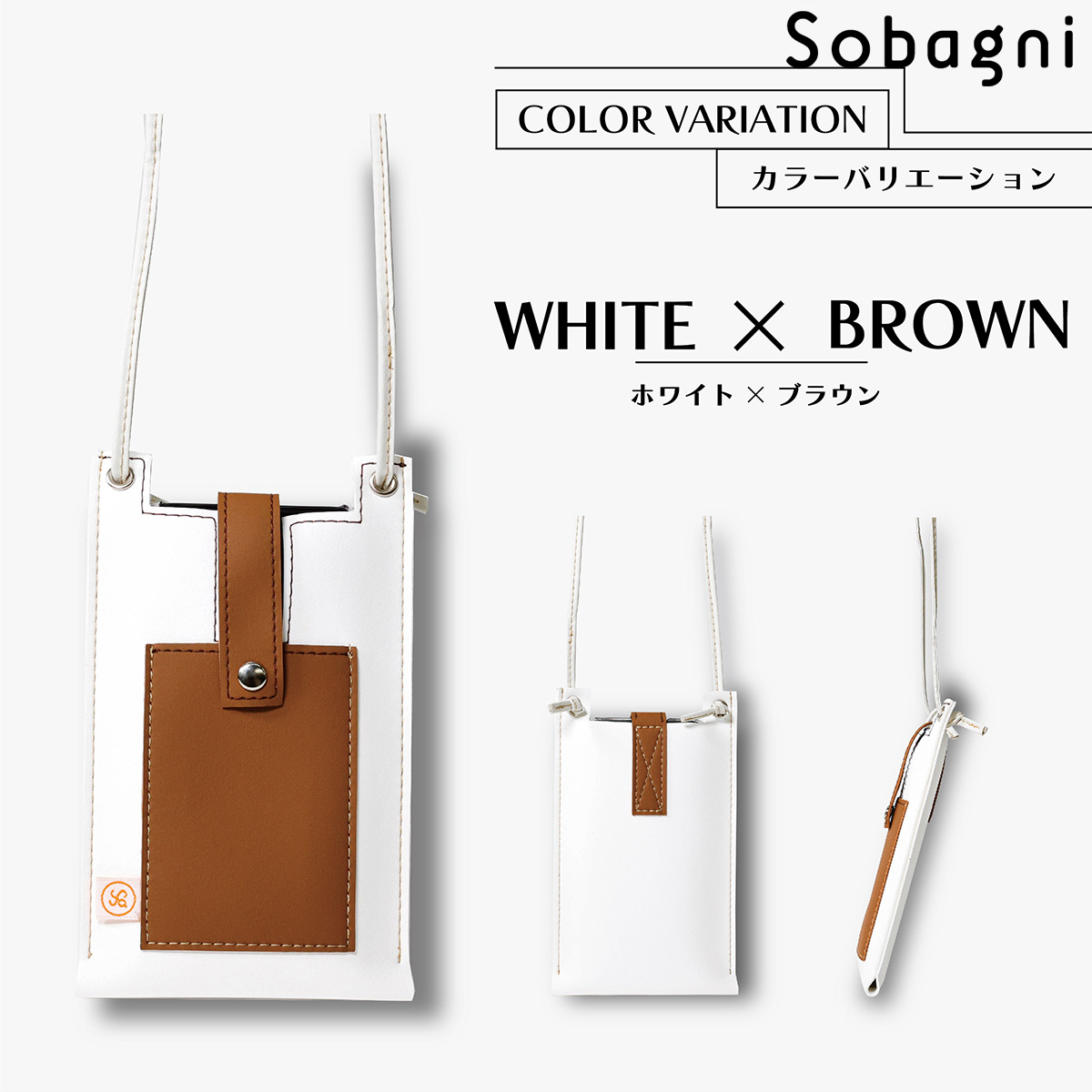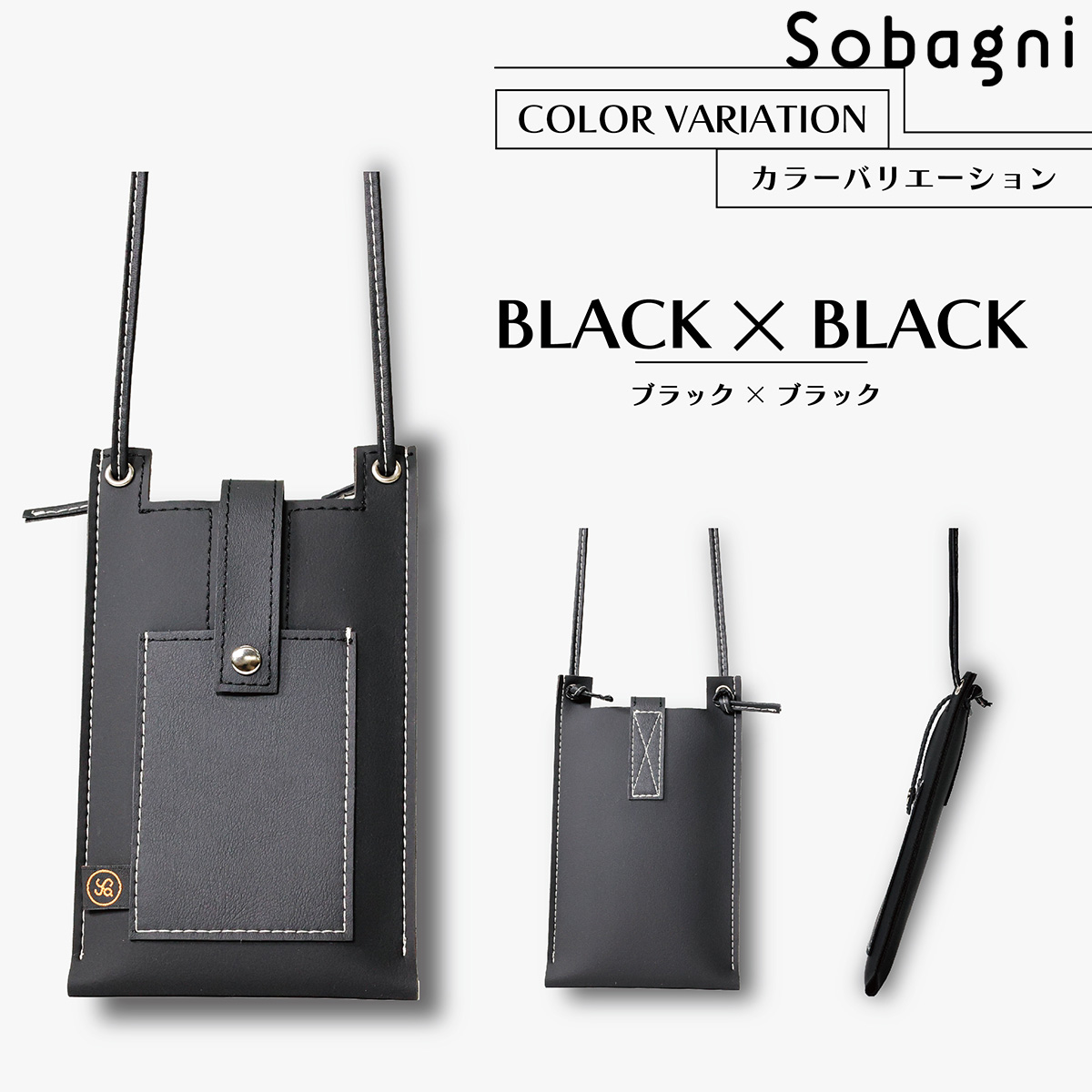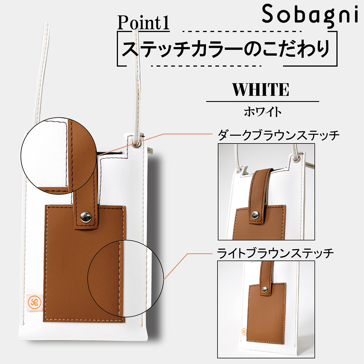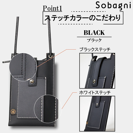 ソバニ公式 stitch phone bag スマホポーチ エシカル合皮 スマホショルダー 携帯ポーチ 斜め掛け ブラック ホワイト 軽量 おしゃれ シンプル スマート 高耐久 防水 防汚 日本製 合皮 合成皮革 送料無料 ブラック ホワイト 旅行 ヴィーガンファッション
