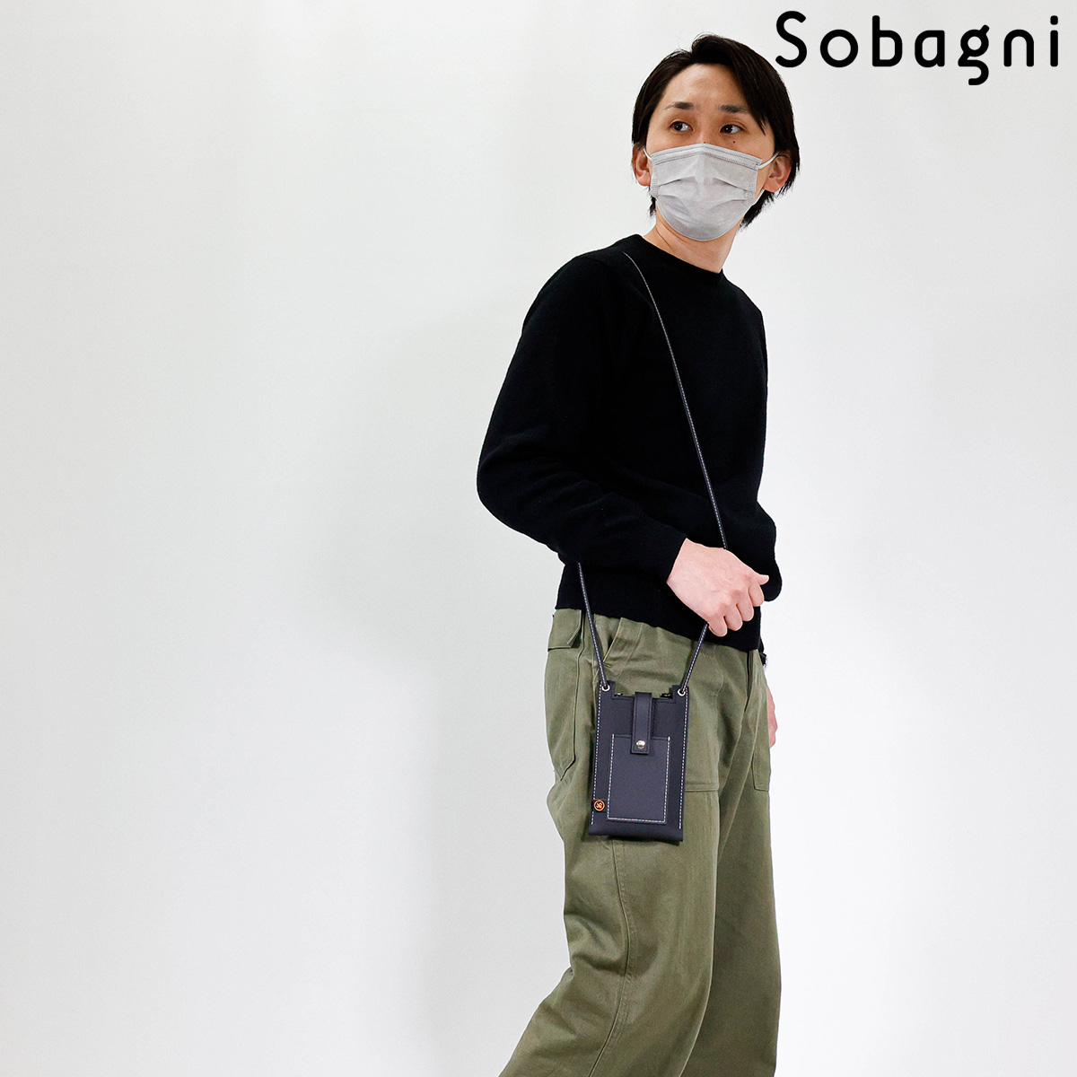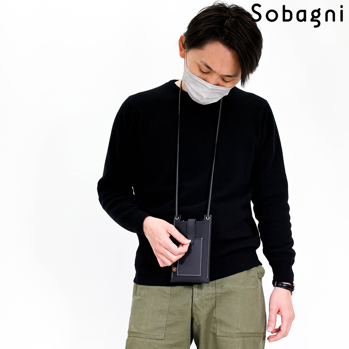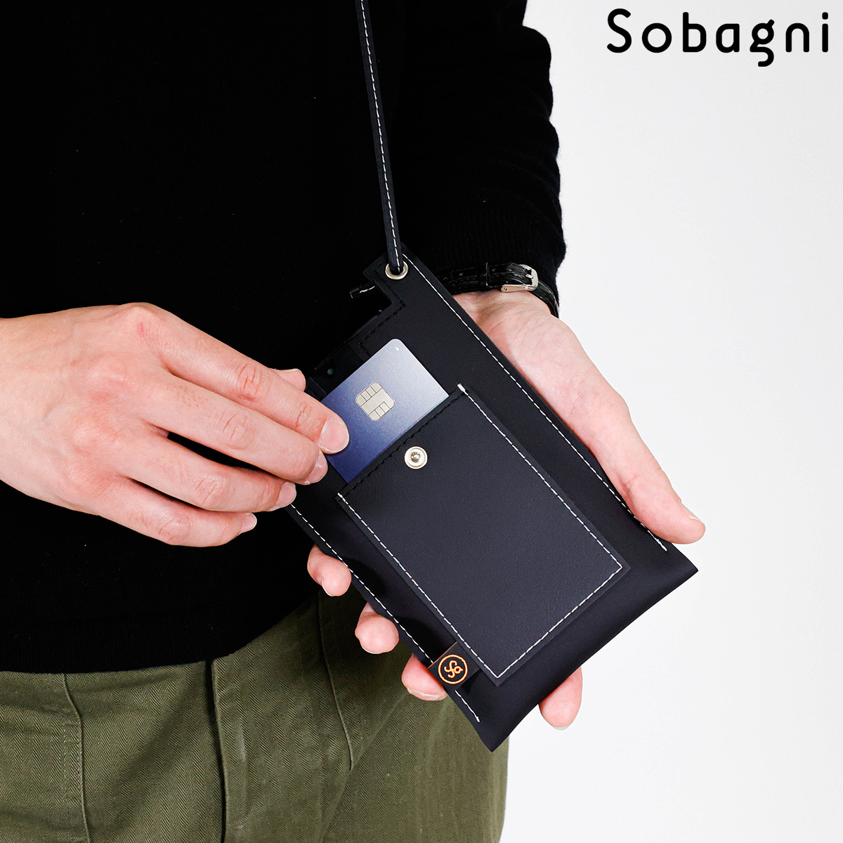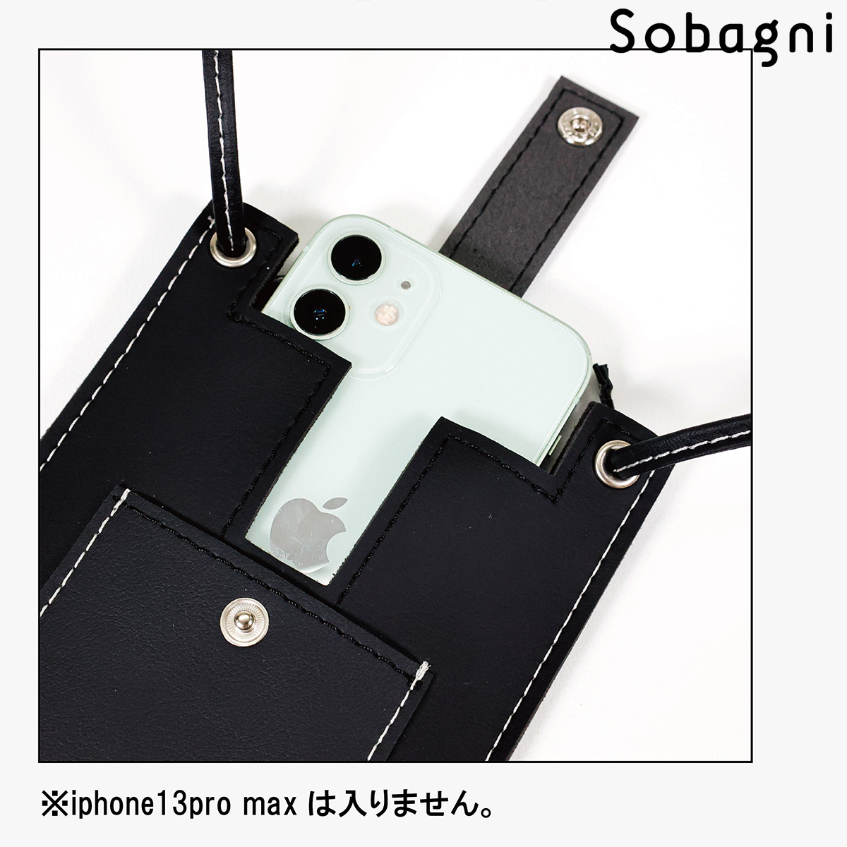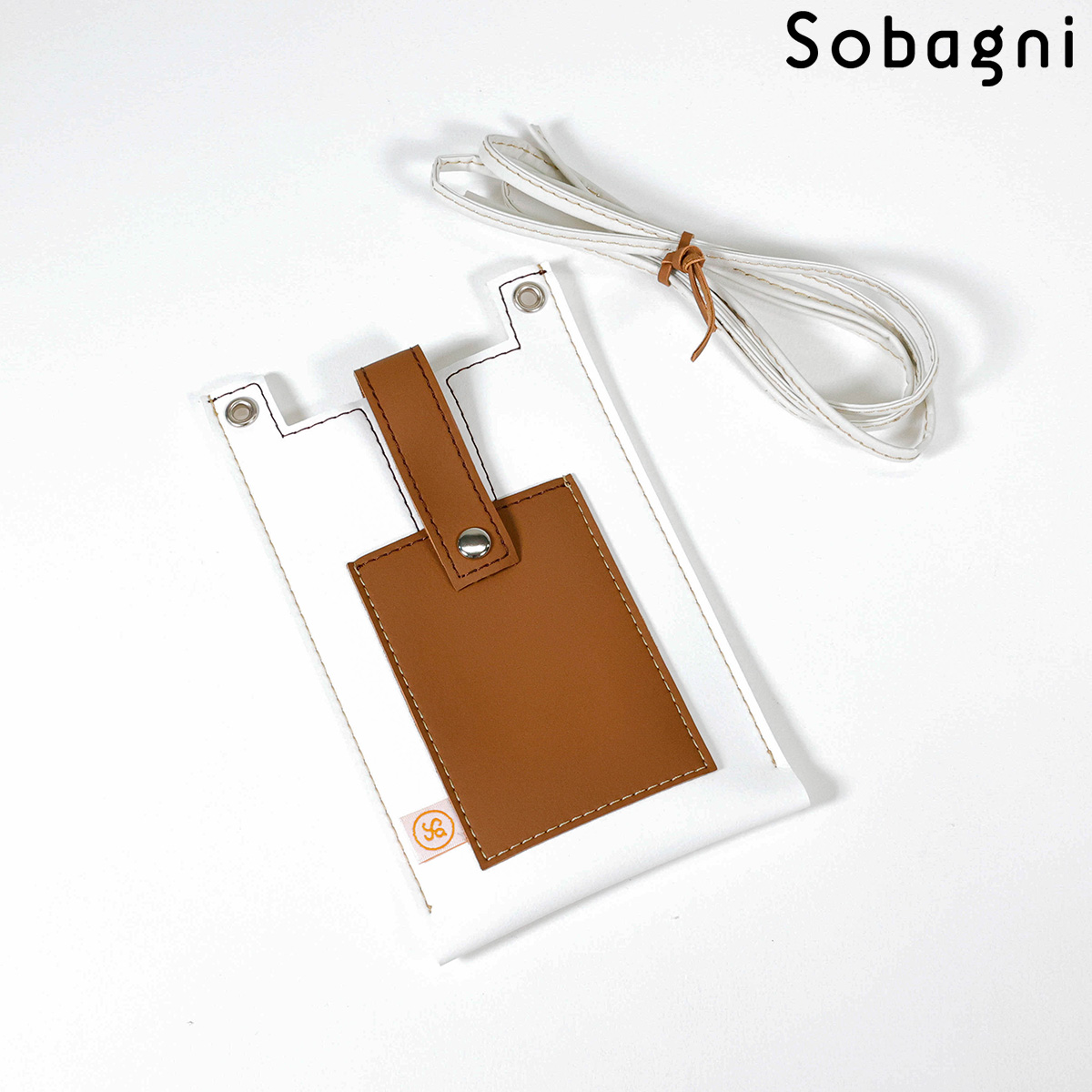 ソバニ公式 stitch phone bag スマホポーチ エシカル合皮 スマホショルダー 携帯ポーチ 斜め掛け ブラック ホワイト 軽量 おしゃれ シンプル スマート 高耐久 防水 防汚 日本製 合皮 合成皮革 送料無料 ブラック ホワイト 旅行 ヴィーガンファッション