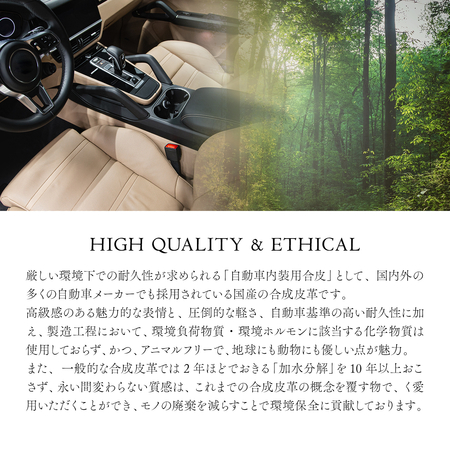 | 【耐久性について】 ◆素材(エシカル合皮)は10年の耐久性がございますが、縫製や金具を含めた商品そのものの耐久性をお約束するものではありません。 |