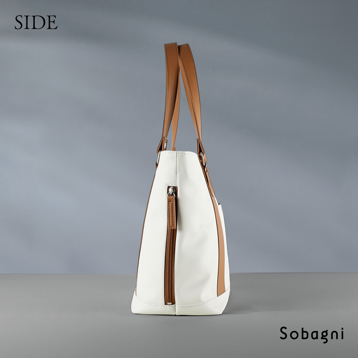 ホワイトとライトブラウンの上品さが際立つバイカラーで大人の女性を演出してくれます。