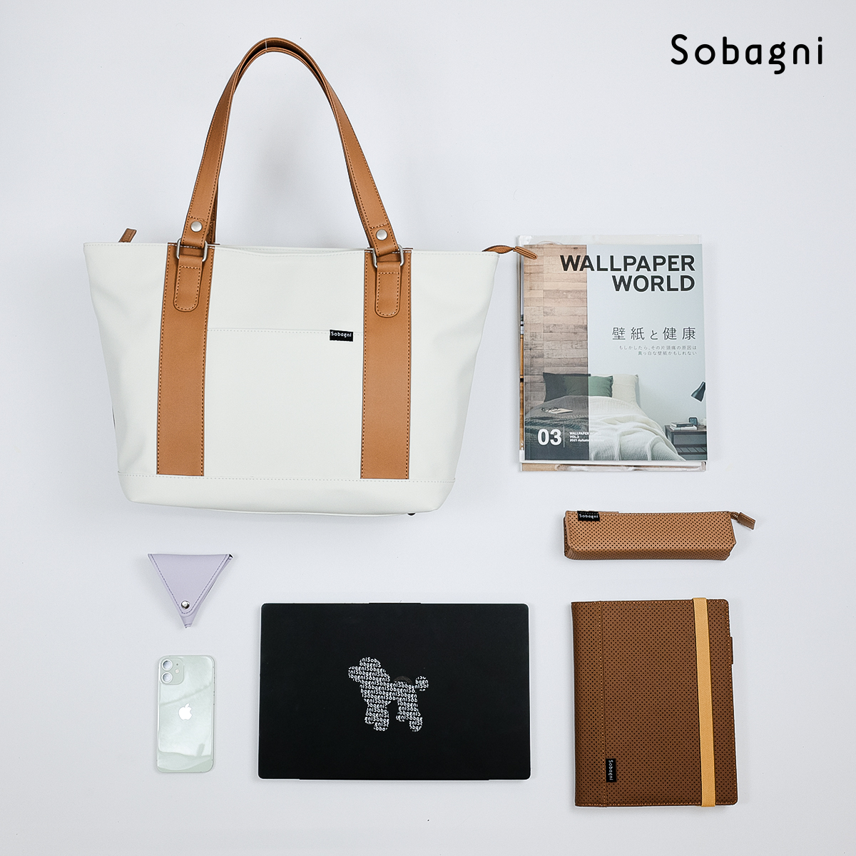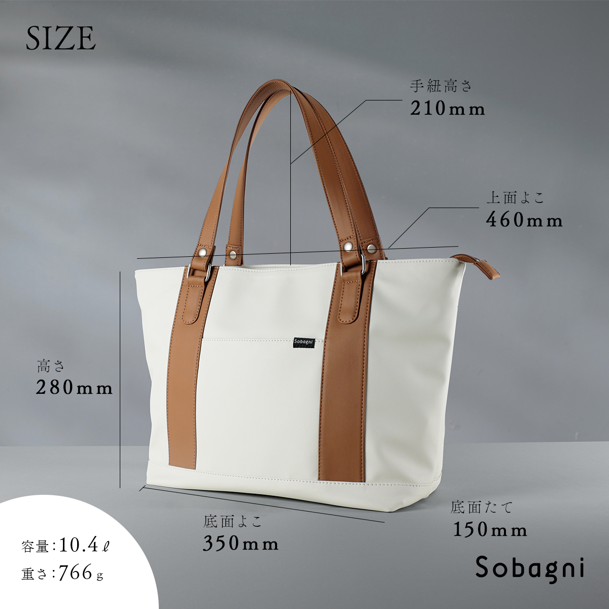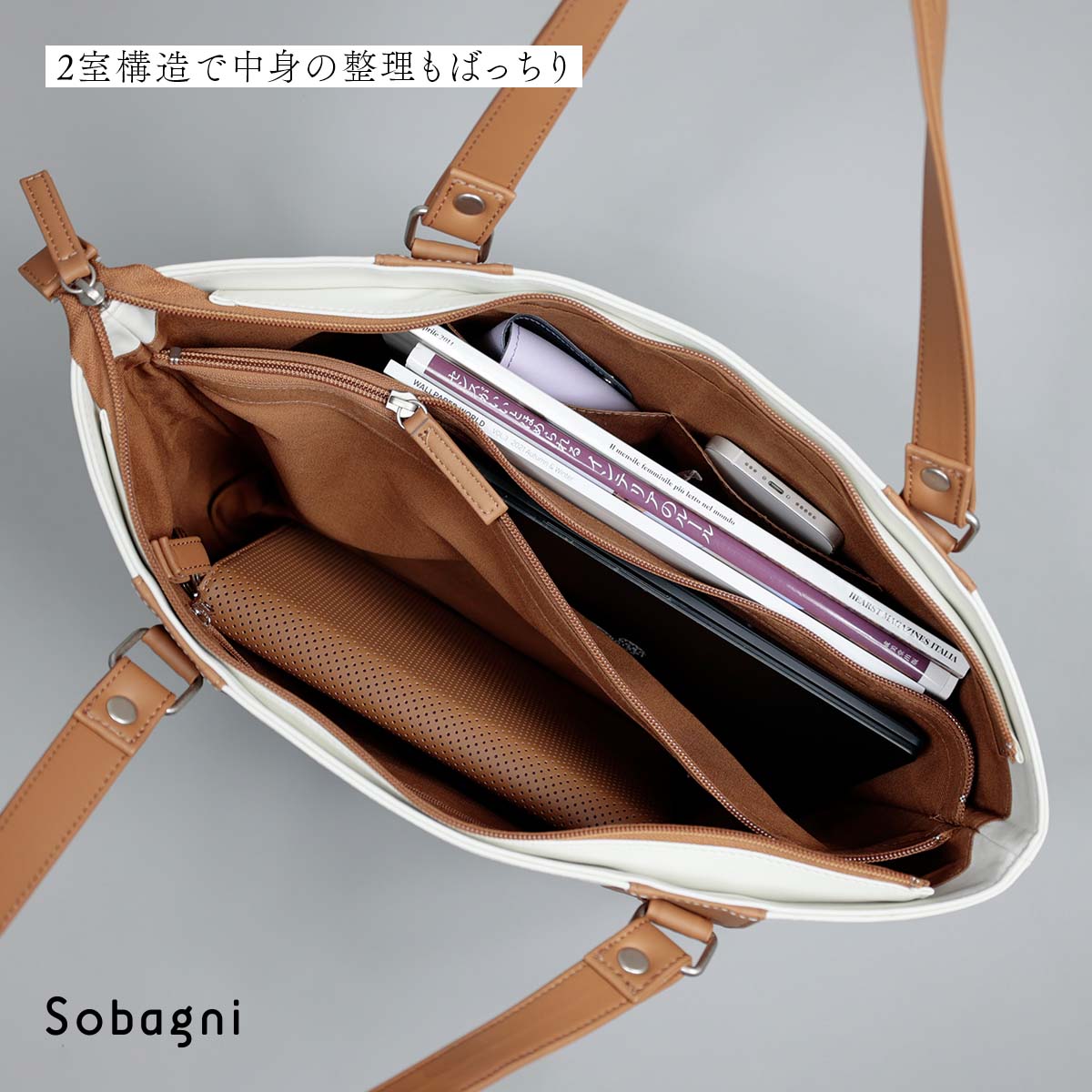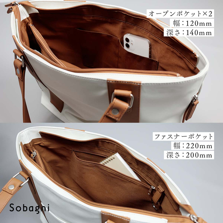 そんなエシカル合皮素材で作ったSobagniのトートバッグはもちろん軽い。本革のバッグのような無駄な重さはありませんので、長時間の移動でも負担を軽減できます。