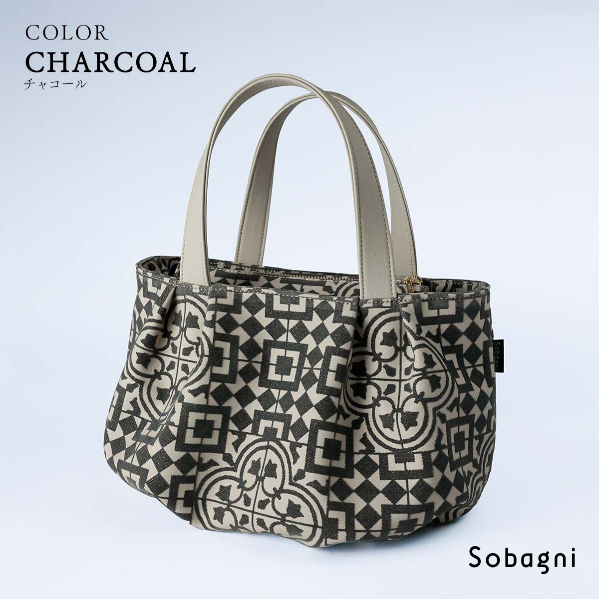 ソバニ公式 ミニトート-Corompkin- モロッコタイル かぼちゃ ミニバック エシカル合皮 ホワイト チャコール 軽量 おしゃれ 個性的 お出かけ 高級 日本製 合皮 合成皮革 送料無料