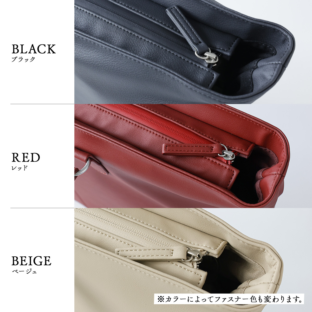 ブラック、レッド、ベージュの3色展開で、あなたのスタイルやシーン、個性に合わせてお選びいただけます。