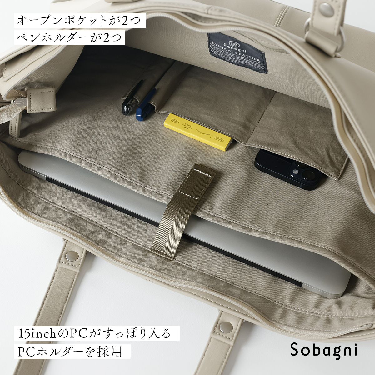 ソバニ公式 国産エシカル合皮A3ビジネスバッグ メンズ レディース 防水 撥水 おしゃれ 合皮 ブラック レッド ベージュ ヴィーガンファッション