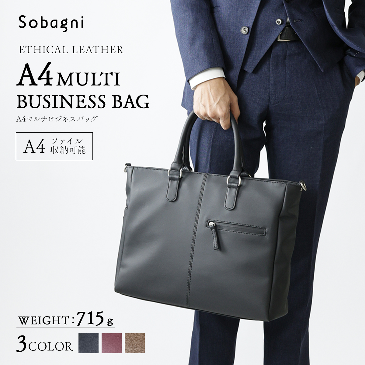 タフネス&ライト、エシカル合皮製ビジネスバッグ