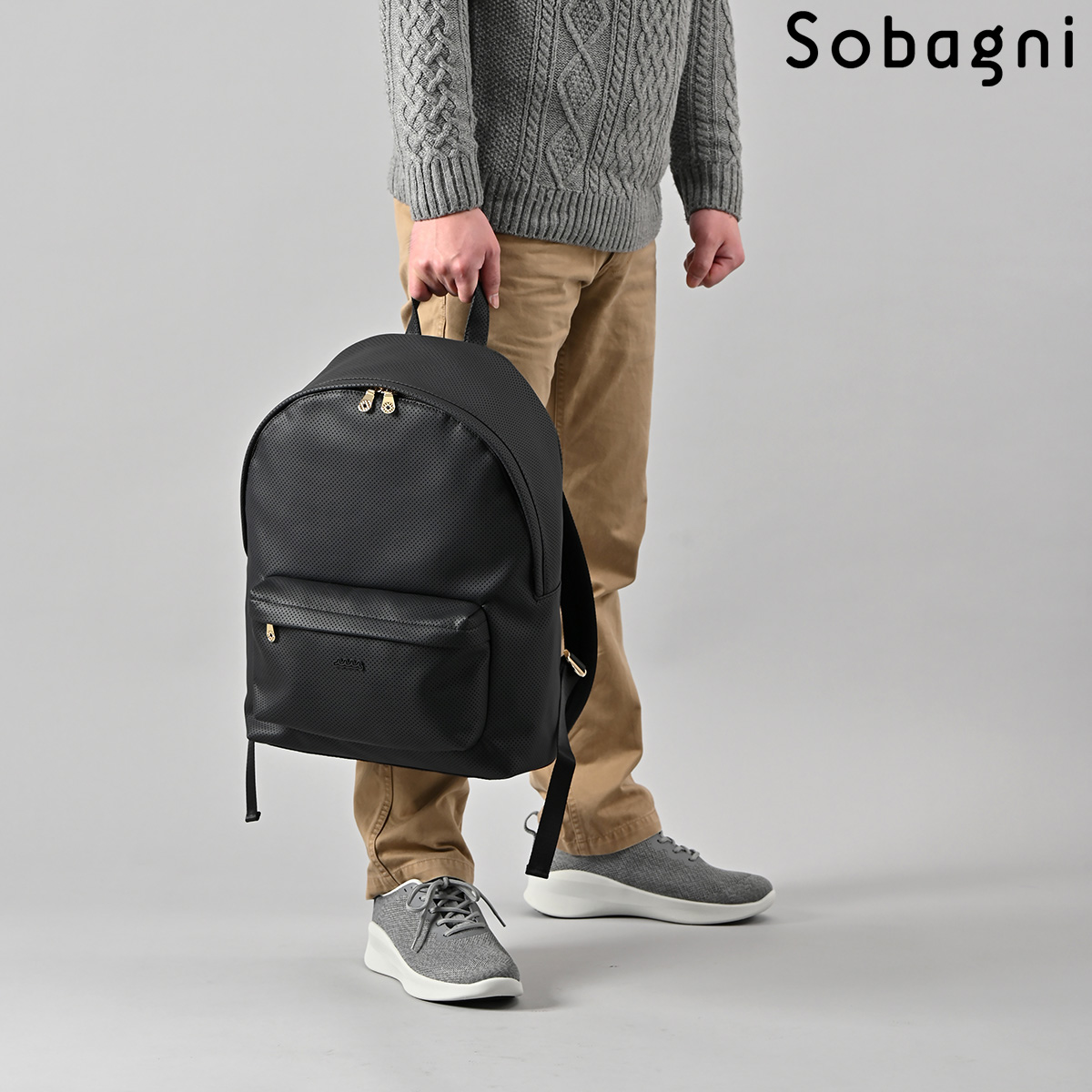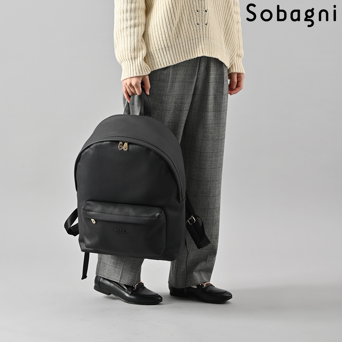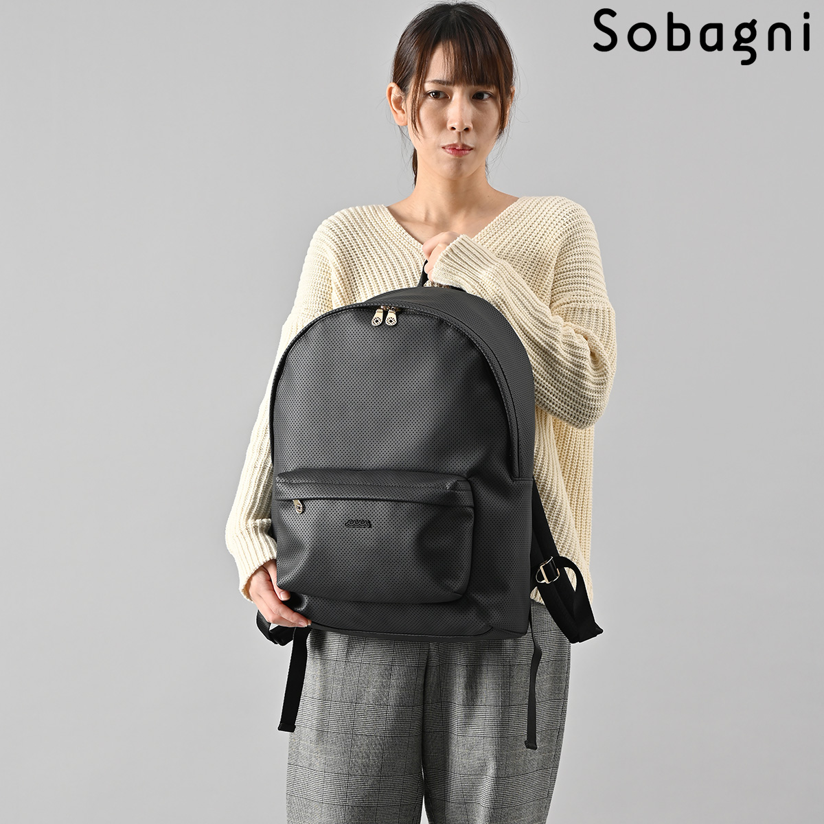 オシャレなパンチング合皮にmutaのロゴが映えるデザイン。