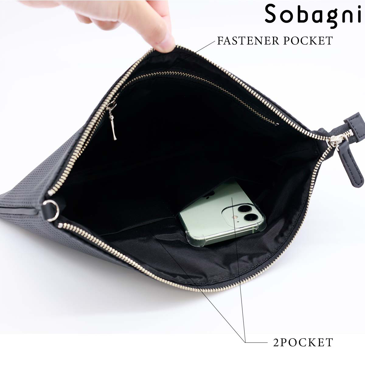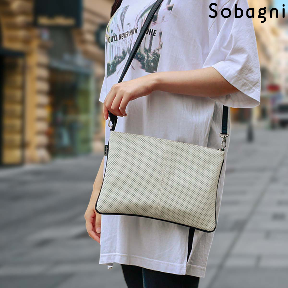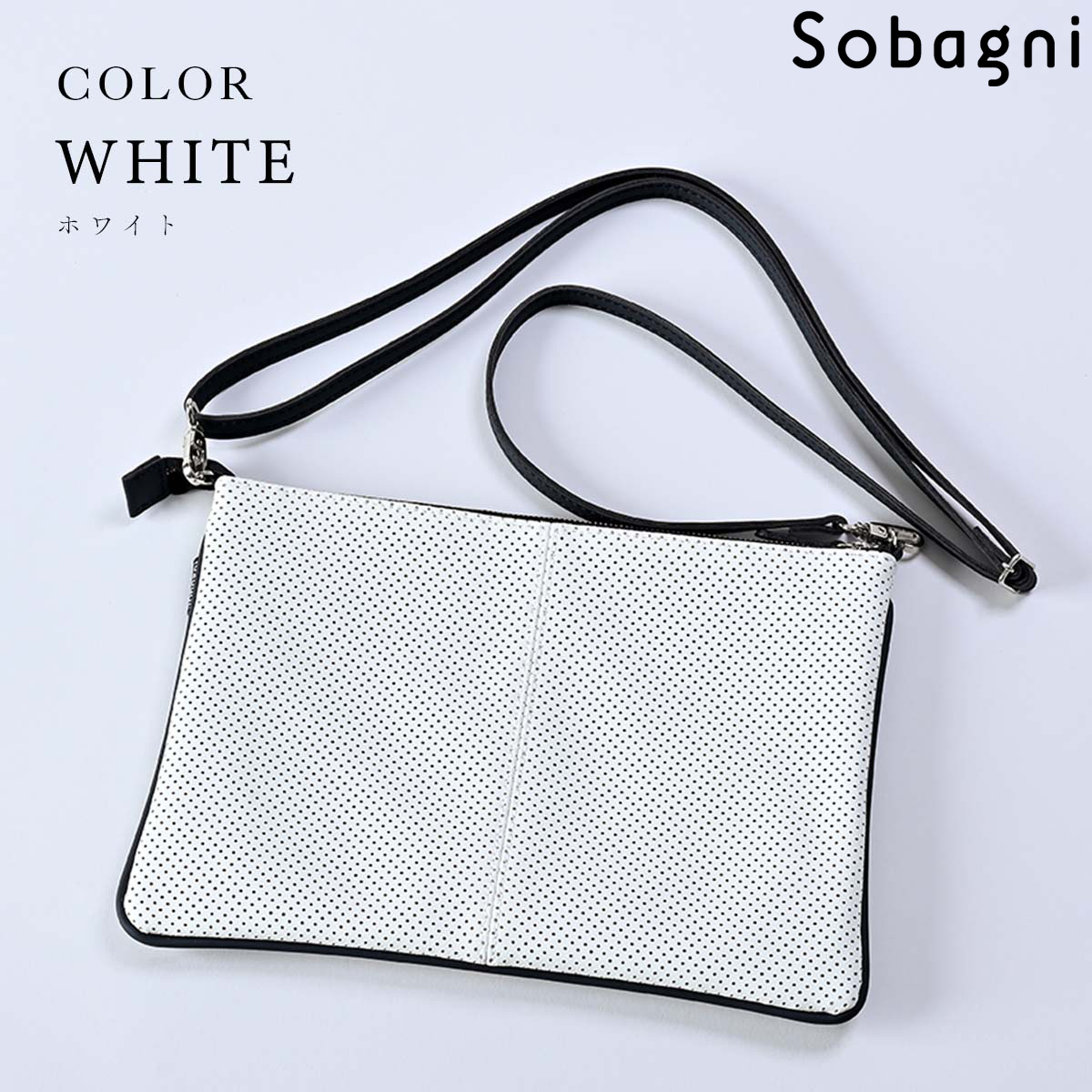ソバニ公式 パンチングサコッシュ クラッチバック ボディーバック ミニバック ショルダーバック 肩掛け ポシェット 合皮 エシカル合皮 撥水 防水 防汚 お手入れ簡単 ウォッシャブル 日本製 合皮 ギフト 送料無料 ホワイト グレー ネイビー 計9色 旅行 ヴィーガンファッション