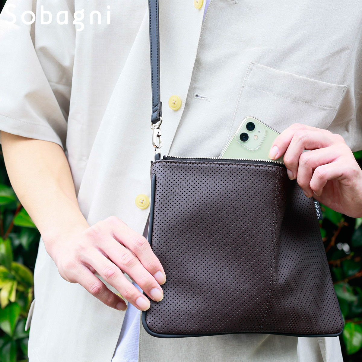 ソバニ公式 パンチングサコッシュ クラッチバック ボディーバック ミニバック ショルダーバック 肩掛け ポシェット 合皮 エシカル合皮 撥水 防水 防汚 お手入れ簡単 ウォッシャブル 日本製 合皮 ギフト 送料無料 ホワイト グレー ネイビー 計9色 旅行 ヴィーガンファッション