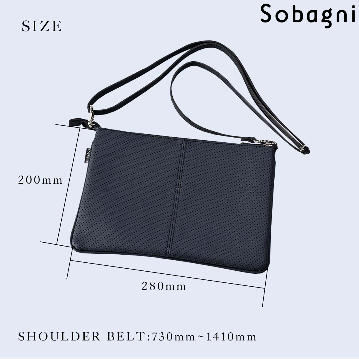 サイズ縦:200mm × 横:280mm、ショルダー長さ 約730mm~1410mm
