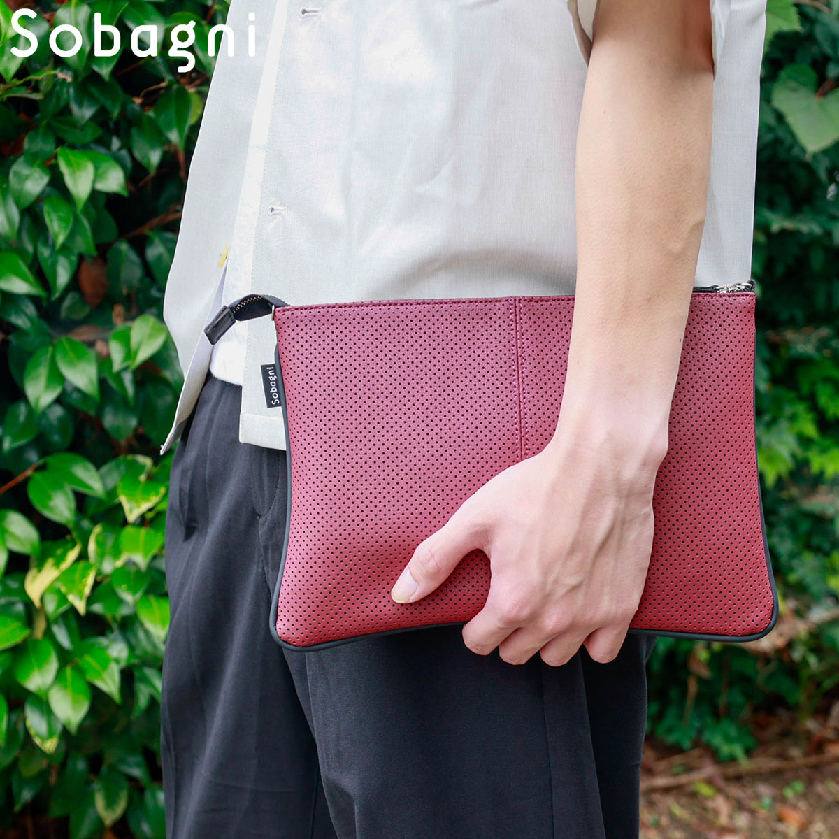 ソバニ公式 パンチングサコッシュ クラッチバック ボディーバック ミニバック ショルダーバック 肩掛け ポシェット 合皮 エシカル合皮 撥水 防水 防汚 お手入れ簡単 ウォッシャブル 日本製 合皮 ギフト 送料無料 ホワイト グレー ネイビー 計9色 旅行 ヴィーガンファッション