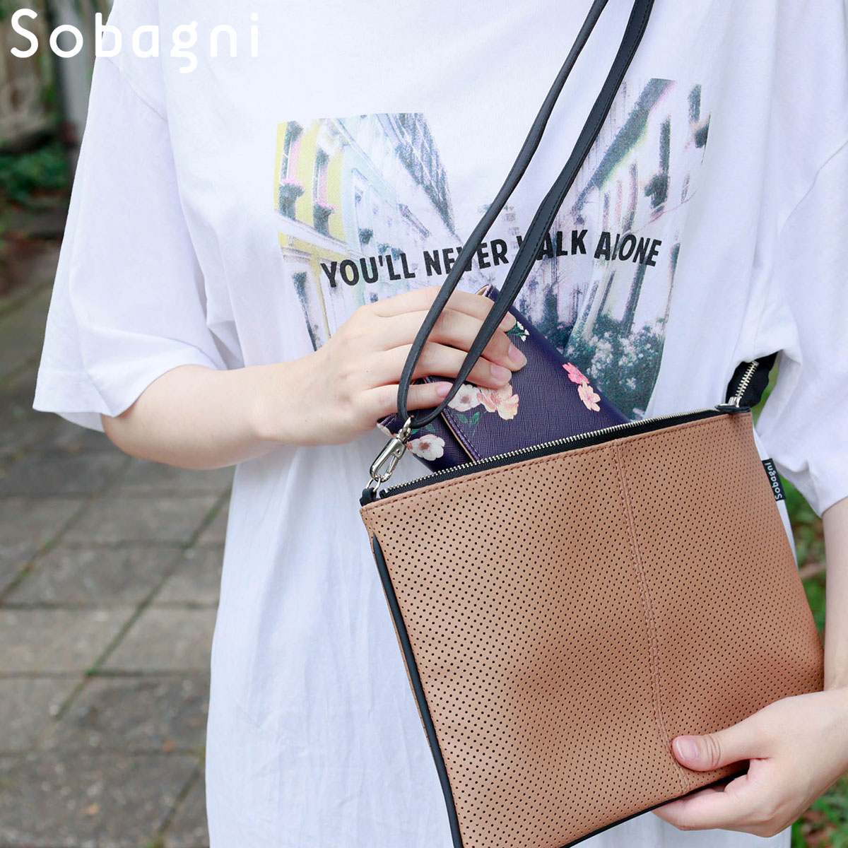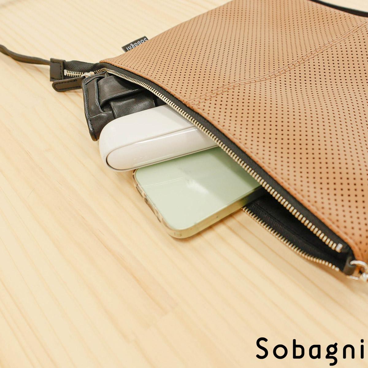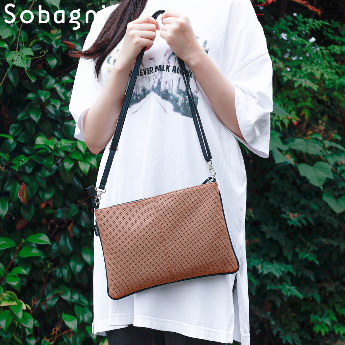 ソバニ公式 パンチングサコッシュ クラッチバック ボディーバック ミニバック ショルダーバック 肩掛け ポシェット 合皮 エシカル合皮 撥水 防水 防汚 お手入れ簡単 ウォッシャブル 日本製 合皮 ギフト 送料無料 ホワイト グレー ネイビー 計9色 旅行 ヴィーガンファッション