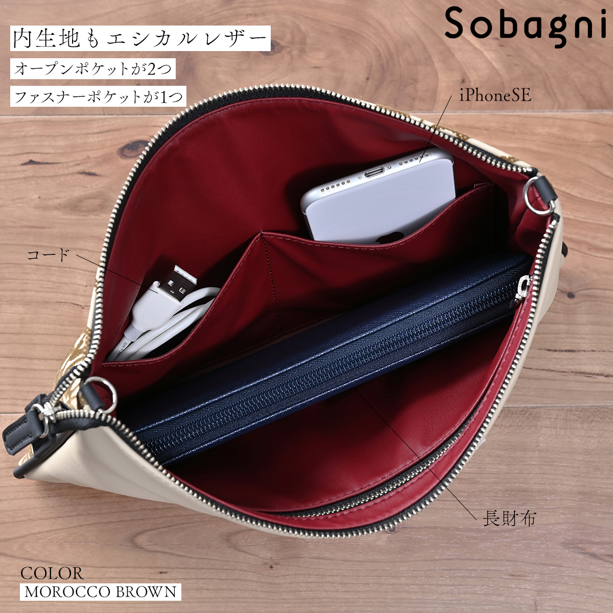 ソバニ公式 フロッキーポシェット ショルダー ボディバッグ サコッシュ メンズ レディース おしゃれ かっこいい かわいい 大人 フォーマル 日本製 合皮 エシカル合皮 送料無料 ベージュ ブラウン レッド ブラック ヴィーガンファッション