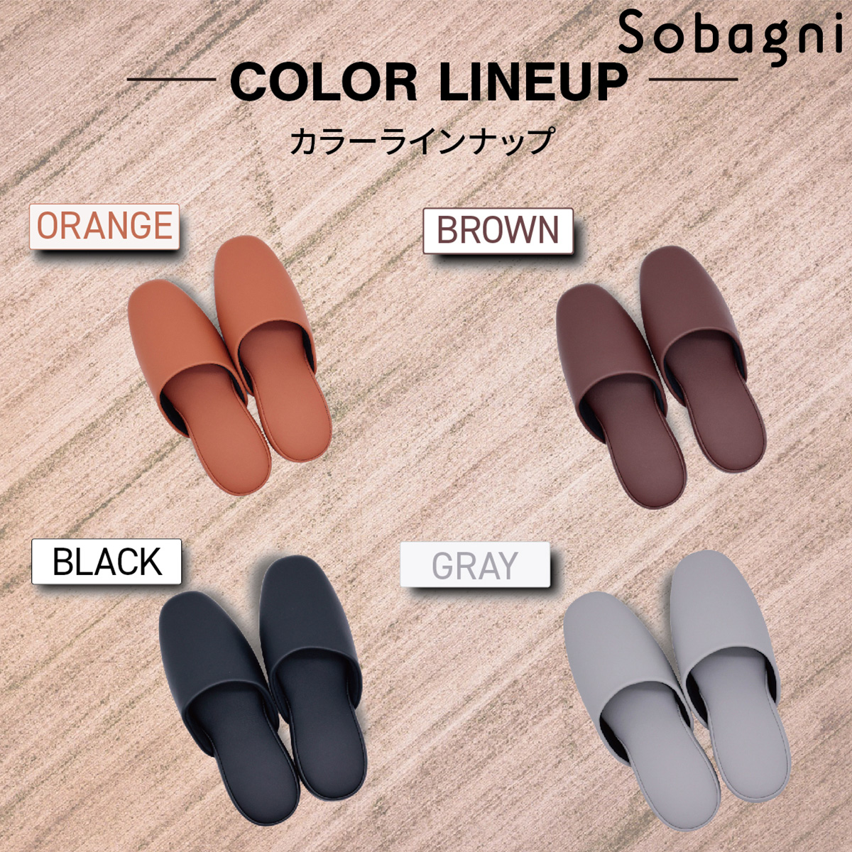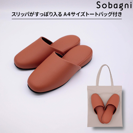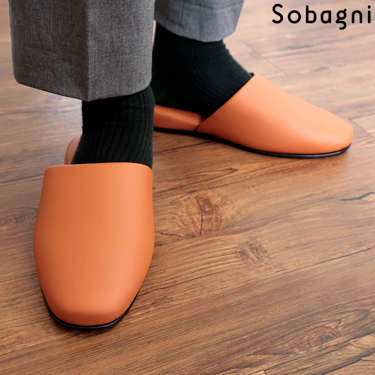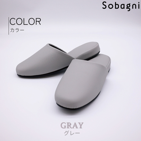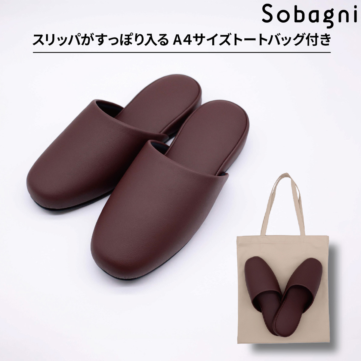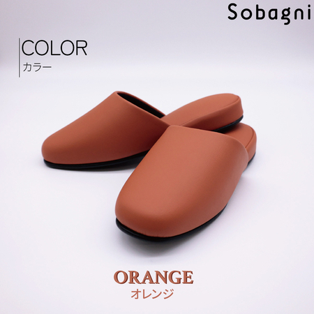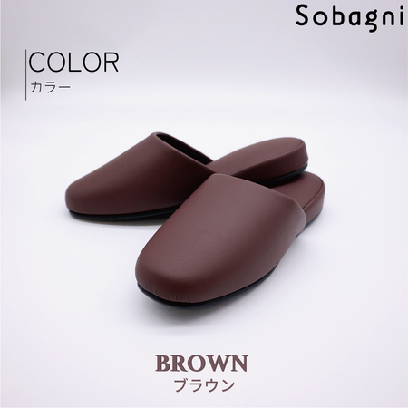 sobagni自社工場で生産された国産エシカル合皮素材を使用し、シンプルながら上品で高級感あるスリッパです。