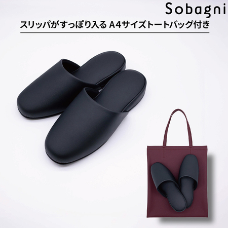 また、スリッパがすっぽり入るA4サイズトートバッグ付き。鞄に入れることなくそのまま持ち歩けるのもとても便利。