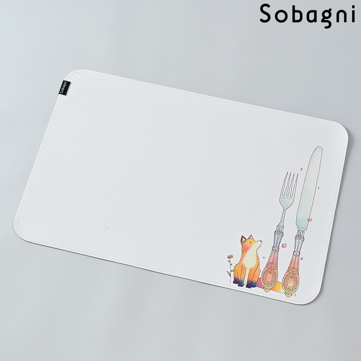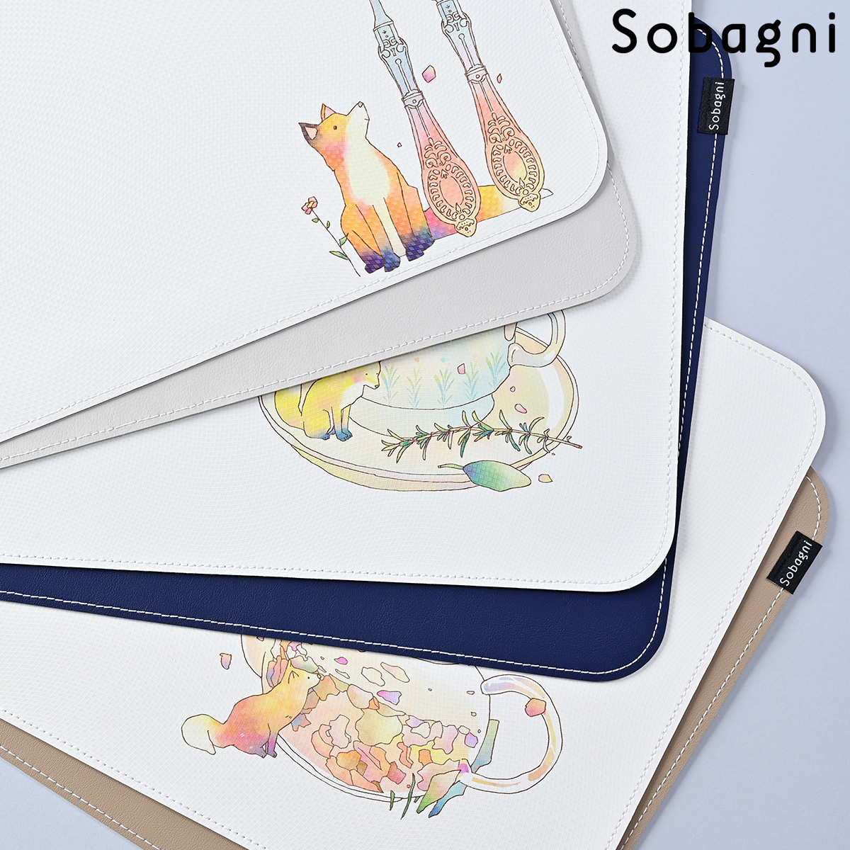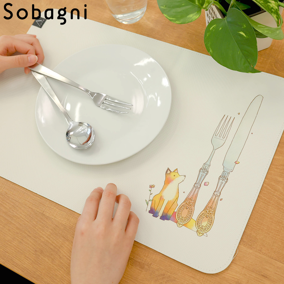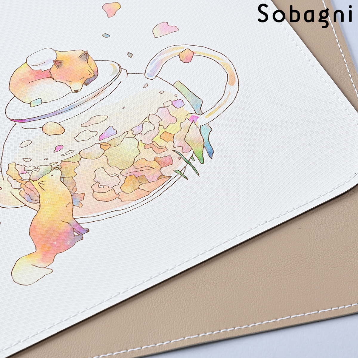 ソバニ公式 きつねのお茶会ランチョンマット ランチョンマット キツネグッズ キツネ好き イクタケマコト きつね キツネ 高耐久 撥水 防汚 お手入れ簡単 ウォッシャブル エシカル合皮 合皮 合成皮革