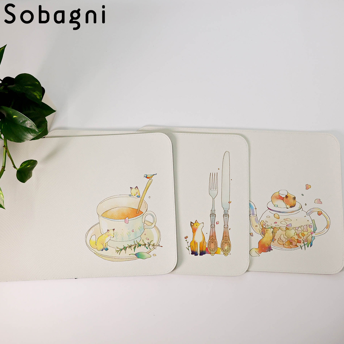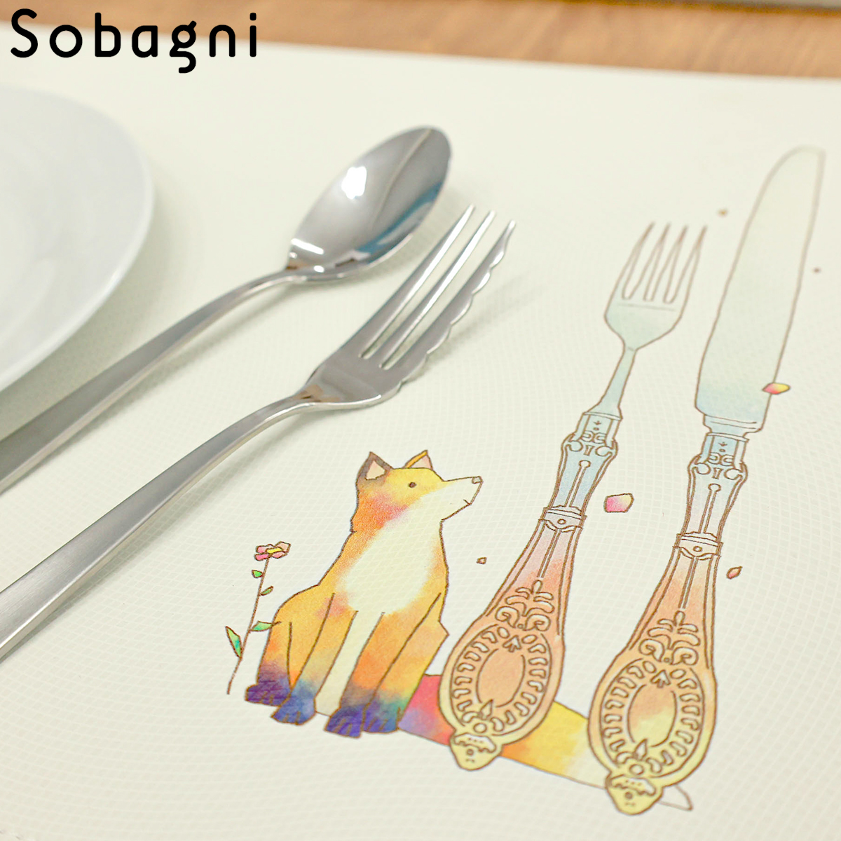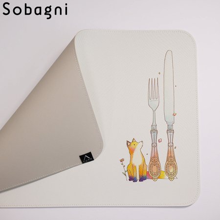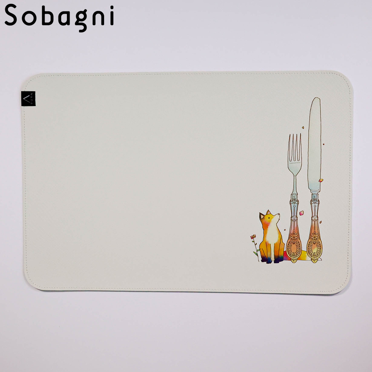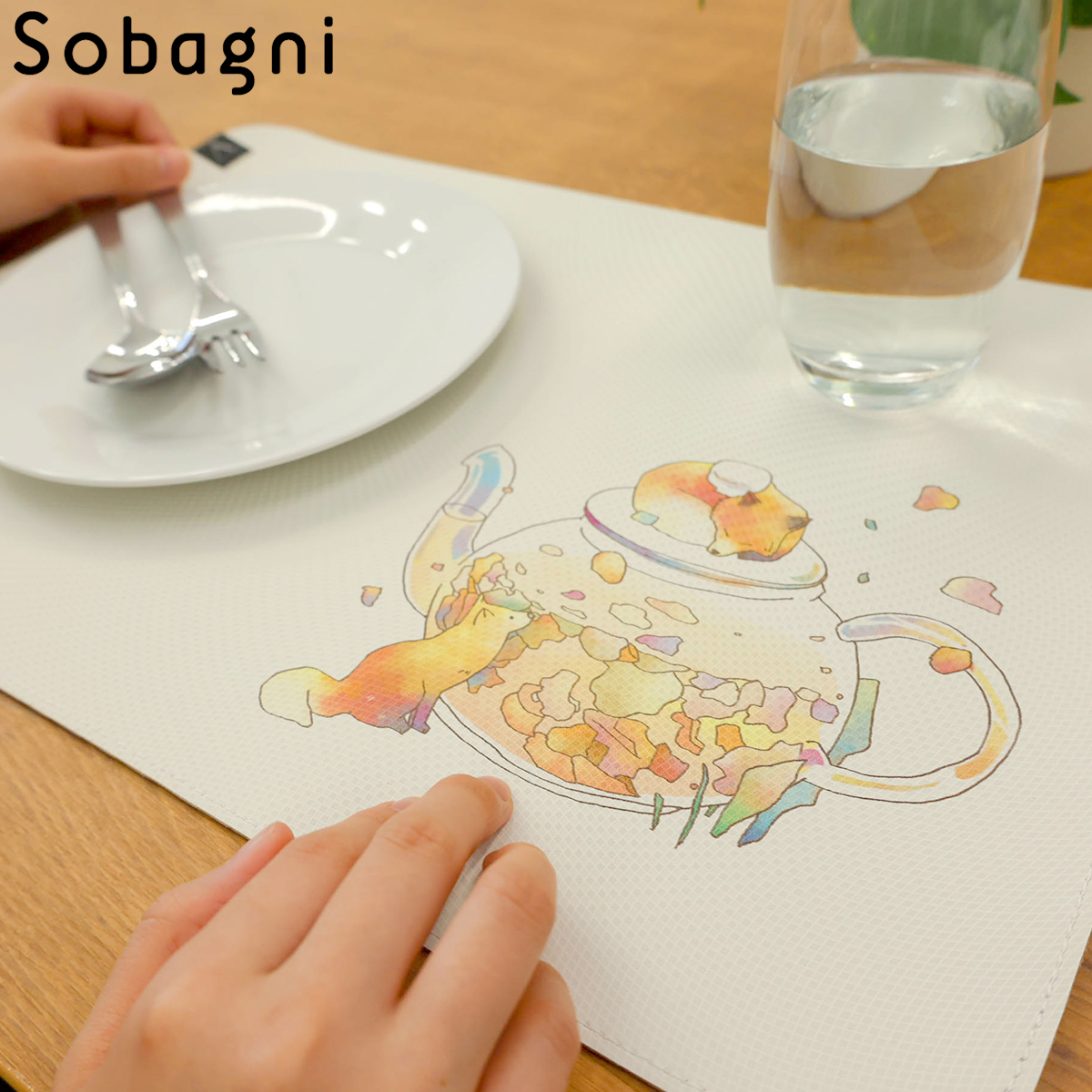 ソバニ公式 きつねのお茶会ランチョンマット ランチョンマット キツネグッズ キツネ好き イクタケマコト きつね キツネ 高耐久 撥水 防汚 お手入れ簡単 ウォッシャブル エシカル合皮 合皮 合成皮革