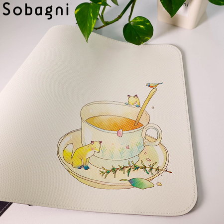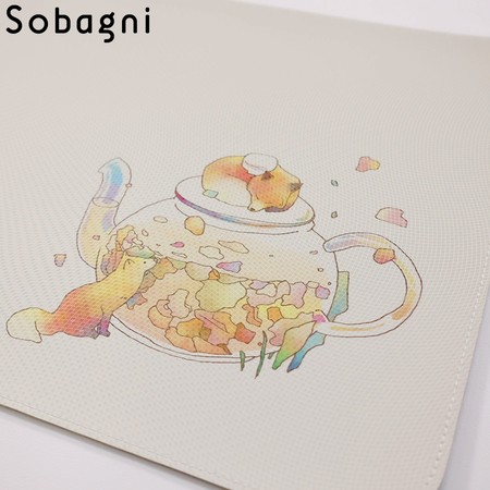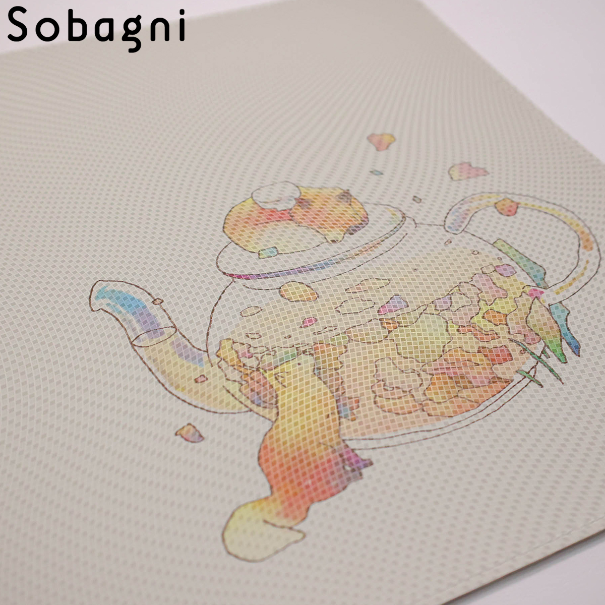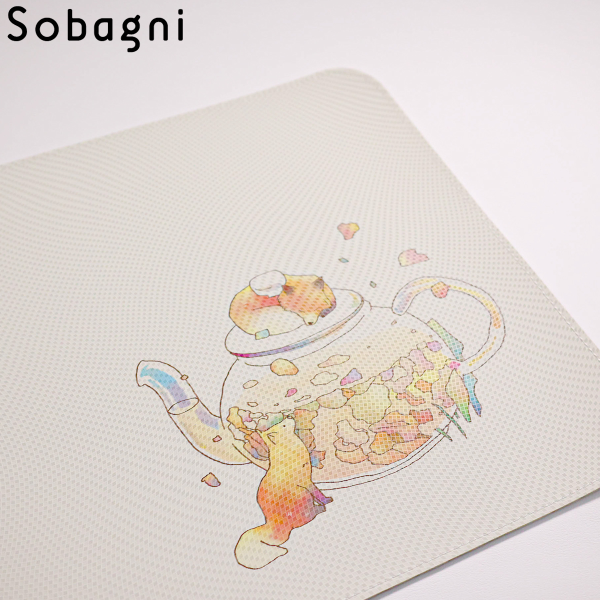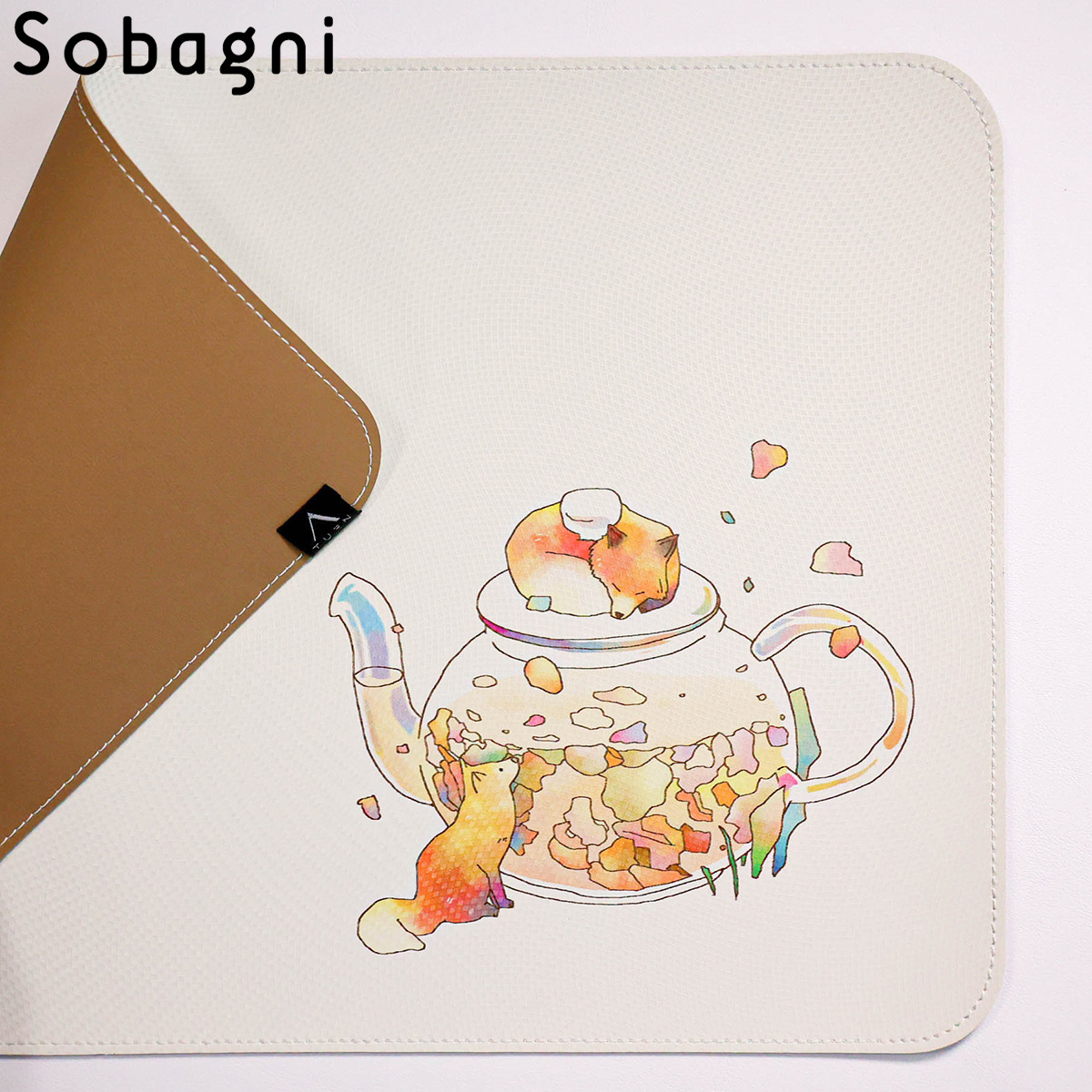 ソバニ公式 きつねのお茶会ランチョンマット ランチョンマット キツネグッズ キツネ好き イクタケマコト きつね キツネ 高耐久 撥水 防汚 お手入れ簡単 ウォッシャブル エシカル合皮 合皮 合成皮革