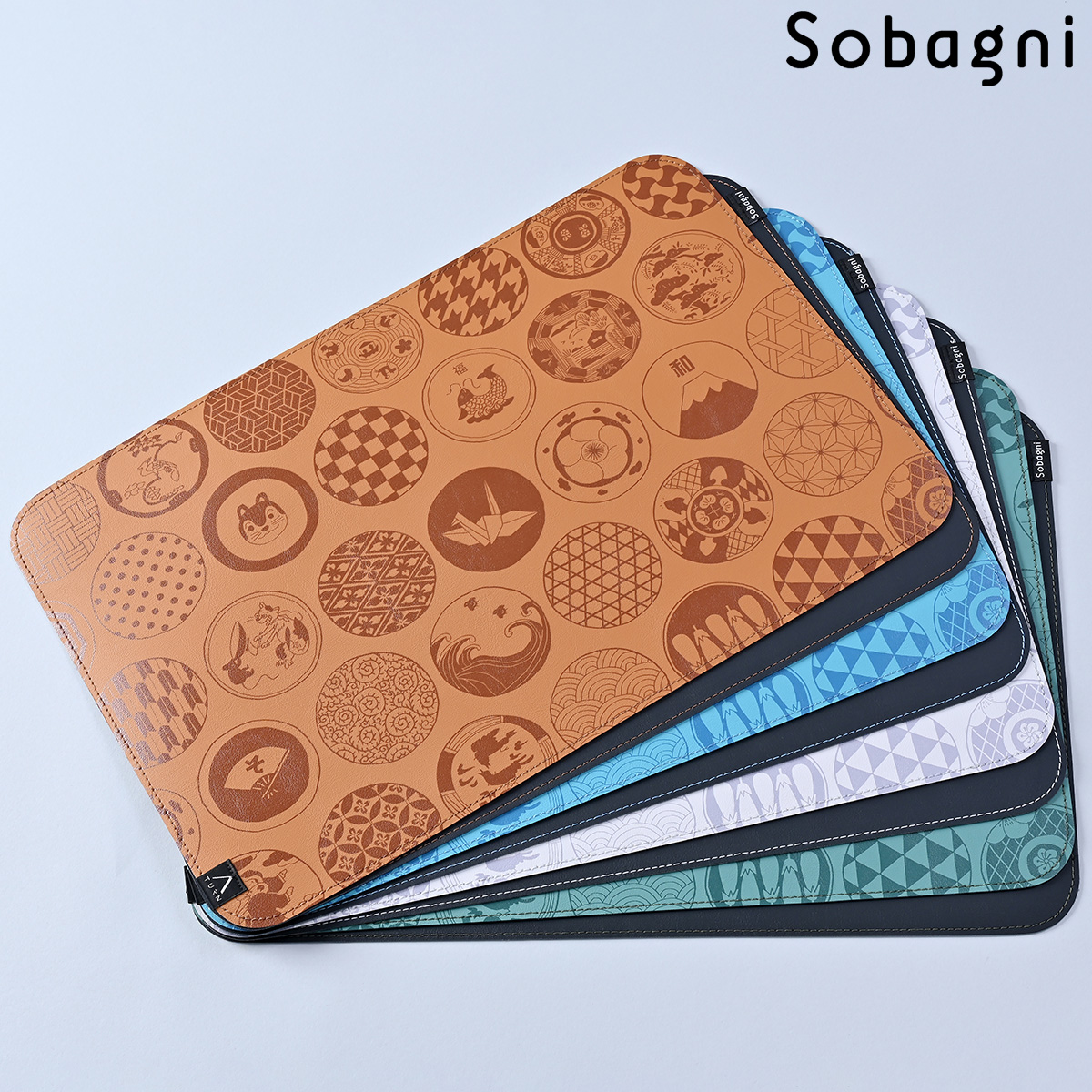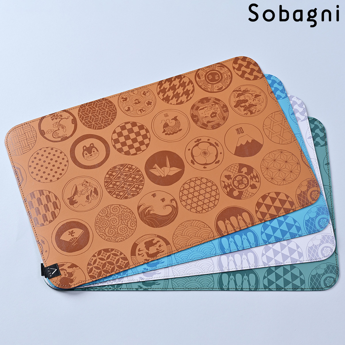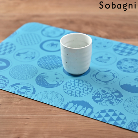 ソバニ公式 和ランチョンマット イクタケマコト イラスト 国産エシカル合皮 ランチョンマット お食い初め 和柄 和モダン 撥水 防水 防汚 お手入れ簡単 汚れに強い ウォッシャブル 日本製 合皮 ブラウン ブラック ブルー 計4色