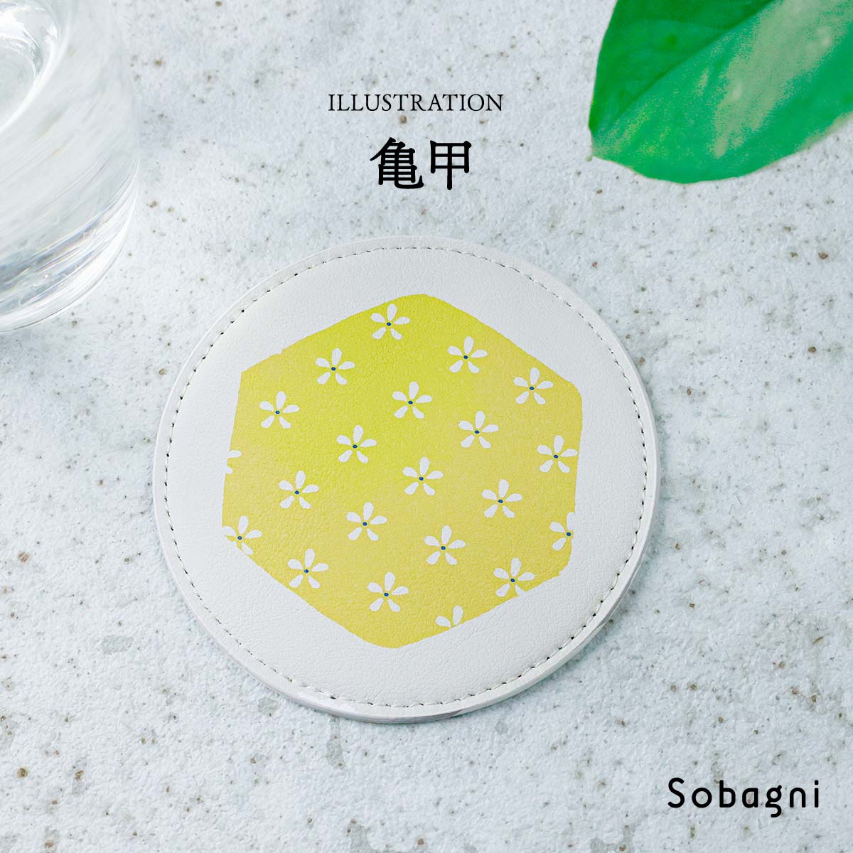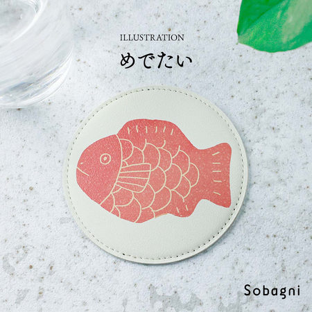 ソバニ公式 なごみコースター 国産エシカル合皮 茶托 コースター 和柄 ステッチ ホワイト イラスト イクタケマコト 撥水 防水 防汚 お手入れ簡単 汚れに強い ウォッシャブル 日本製 合皮 かわいい 丸型 和柄 【メール便】