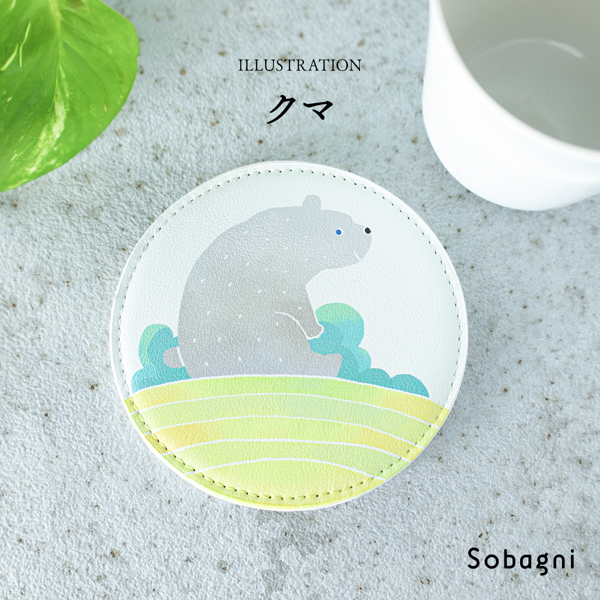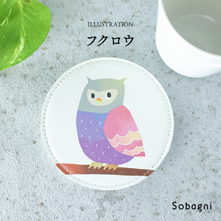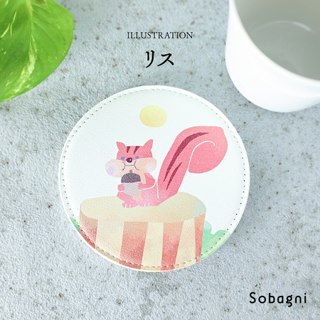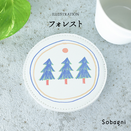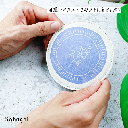 ソバニ公式 北欧コースター 国産エシカル合皮 コースター ステッチ イラスト イクタケマコト 撥水 防水 防汚 お手入れ簡単 汚れに強い ウォッシャブル 日本製 合皮 合成皮革 かわいい 丸型 洋柄 インテリア雑貨 ギフト リバーシブル 【メール便】