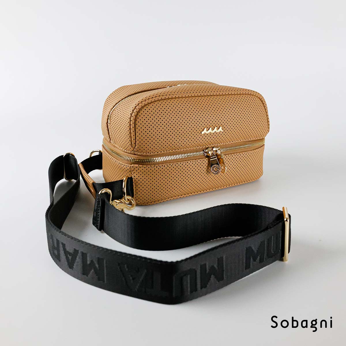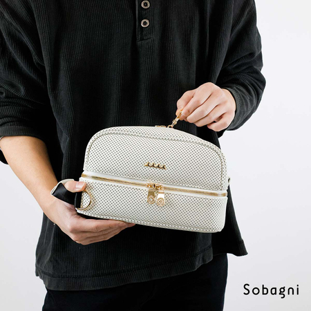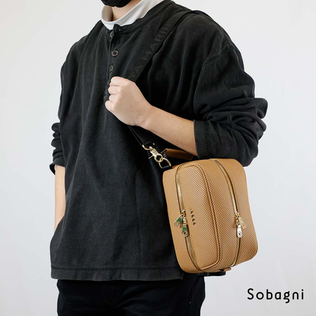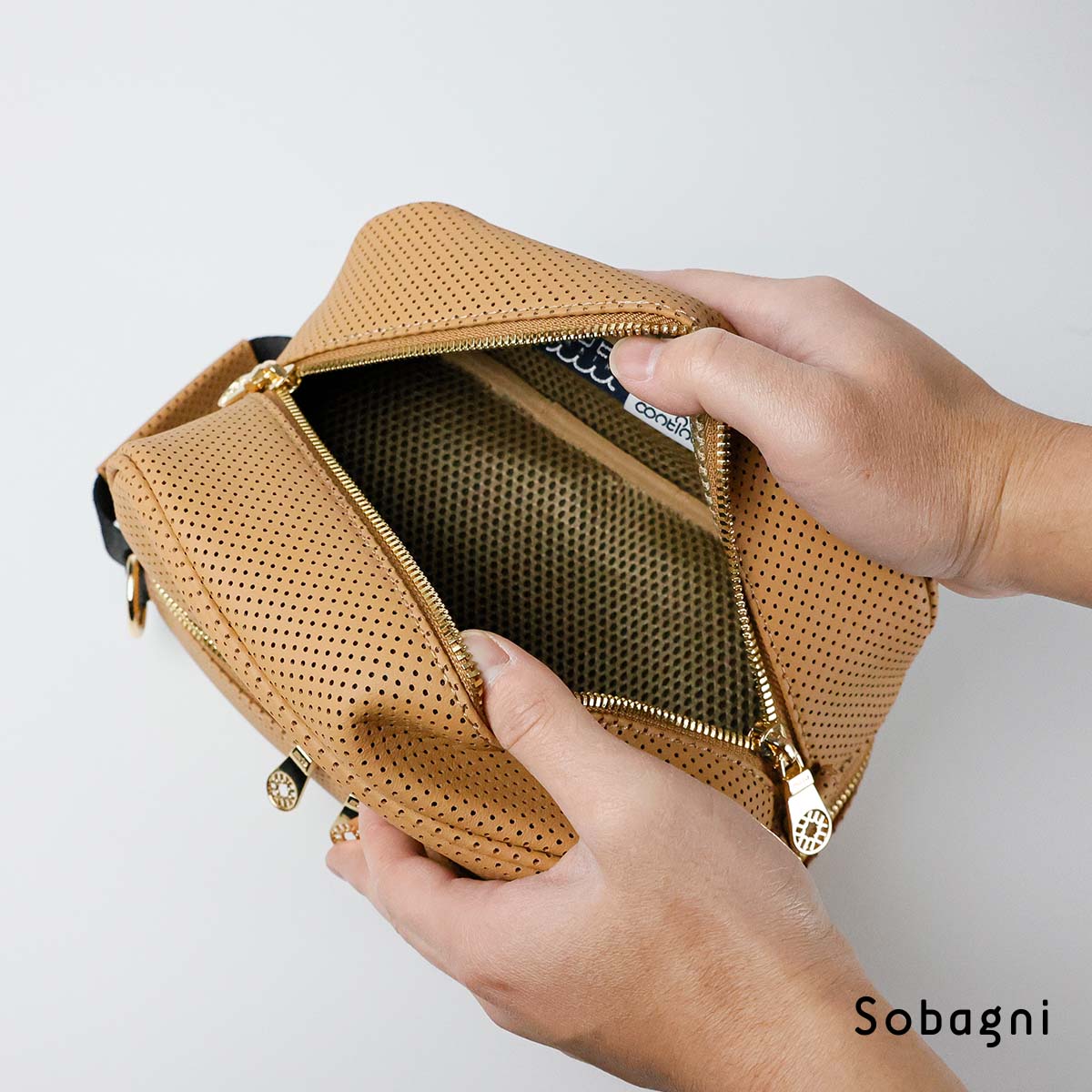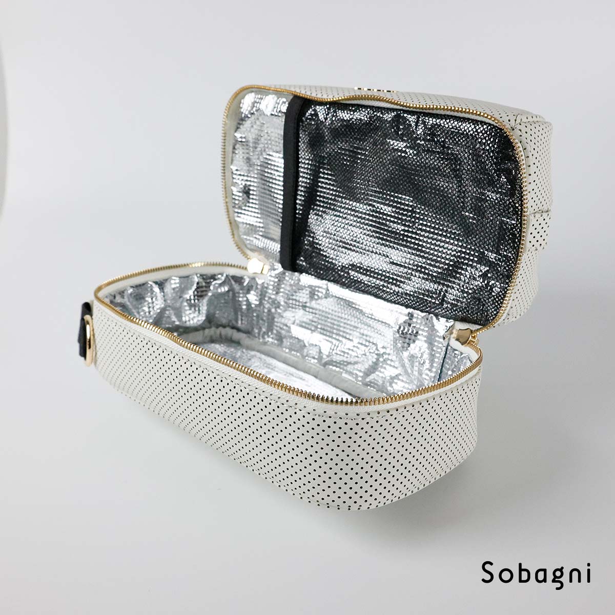 Sobagniのエシカル合皮の中でも最高峰の[CONTINUA]を使用し、イタリア発祥の日本ブランド muta のデザインにより素晴らしいパンチング保冷バッグができました。