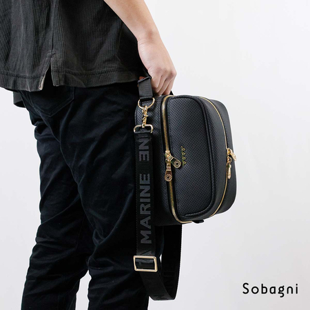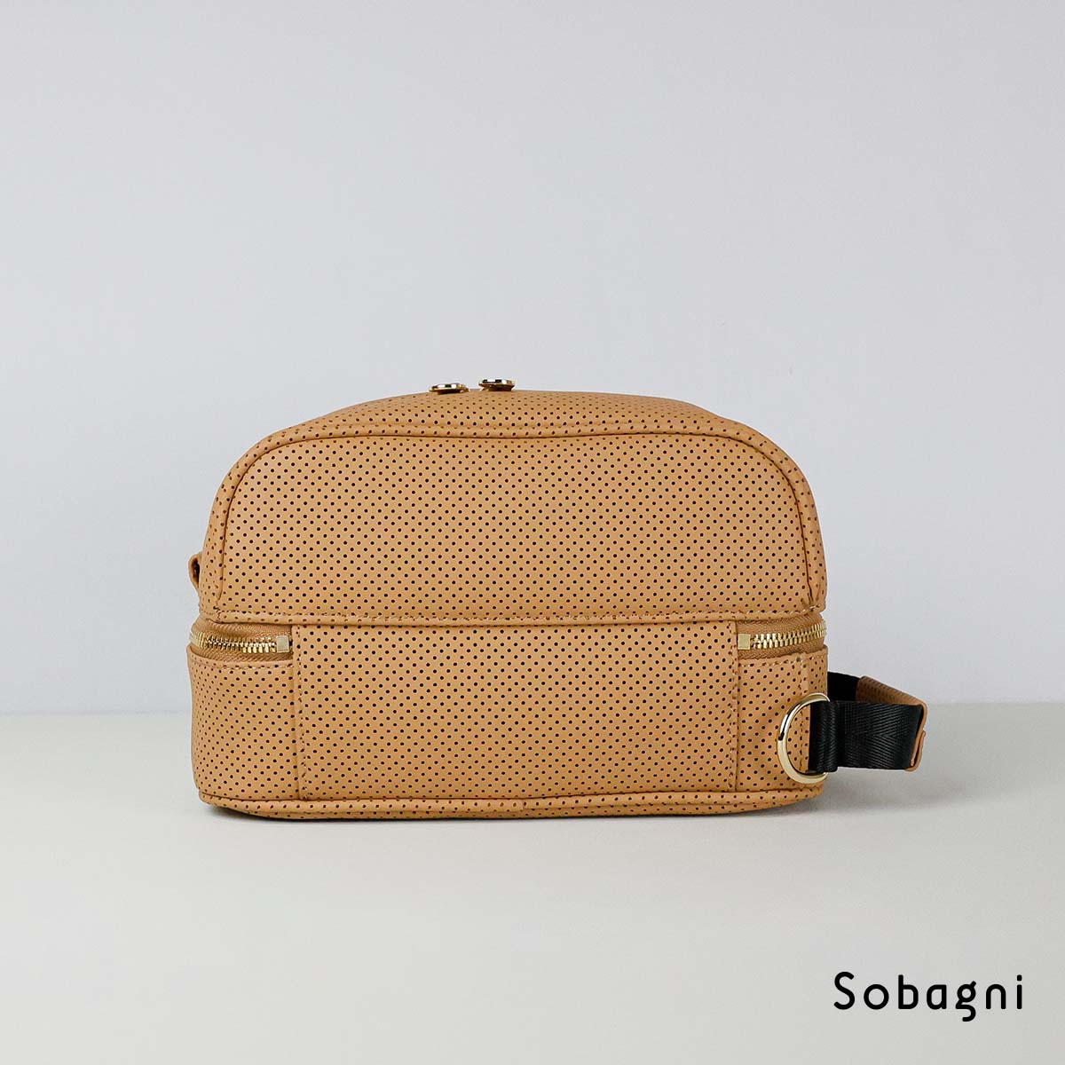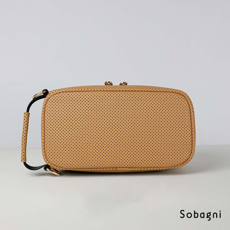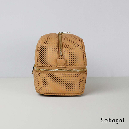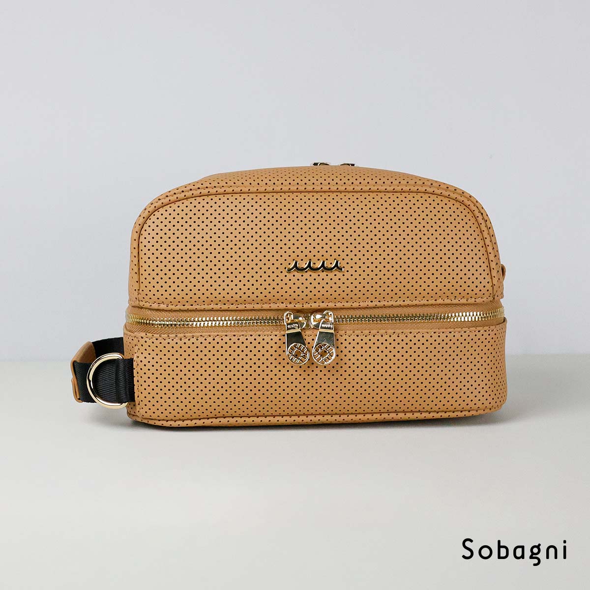 Sobagniのエシカル合皮の中でも最高峰の[CONTINUA]を使用し、イタリア発祥の日本ブランド muta のデザインにより素晴らしいパンチング保冷バッグができました。