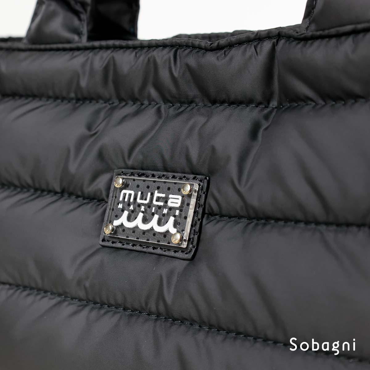 バッグ前面のmutaロゴと持ち手部分にはSobagniのエシカル合皮の中でも最高峰の[CONTINUA]を使用し、高級感を漂わせます。
