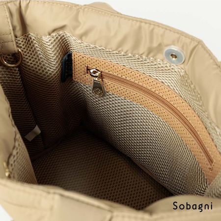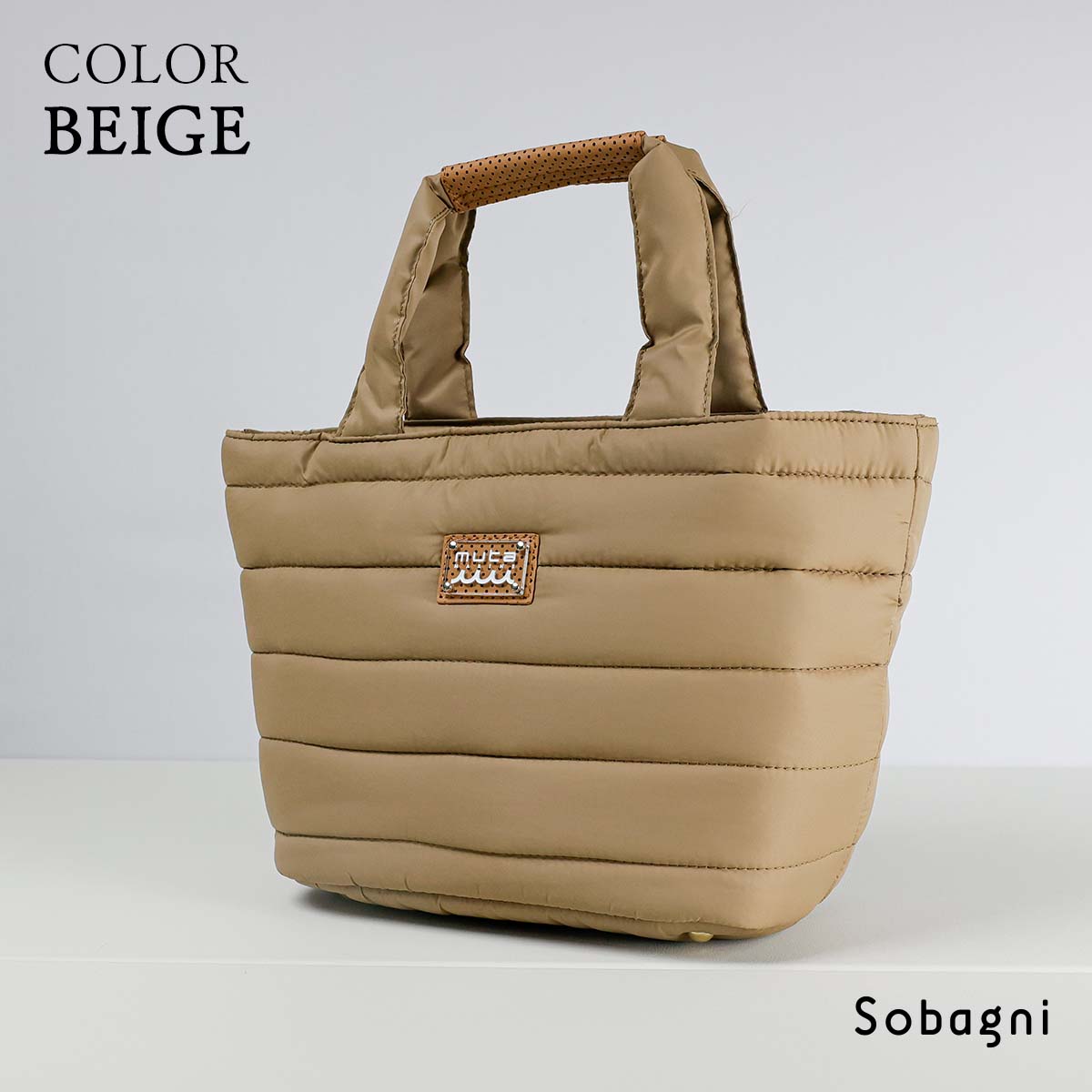 バッグ前面のmutaロゴと持ち手部分にはSobagniのエシカル合皮の中でも最高峰の[CONTINUA]を使用し、高級感を漂わせます。