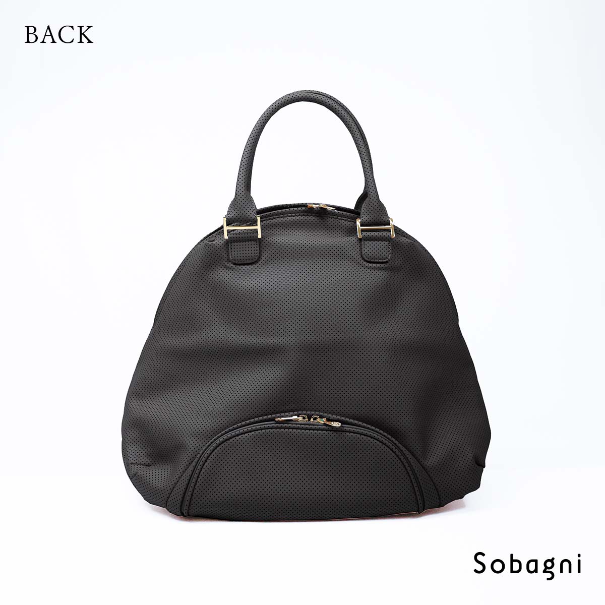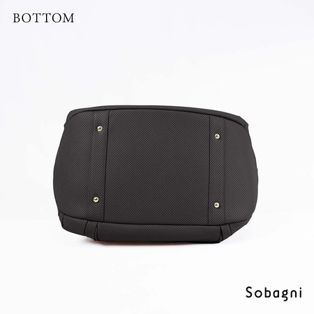 メインの開口部とは別に、背面底の独立型シューズ収納を配した大型バッグ。