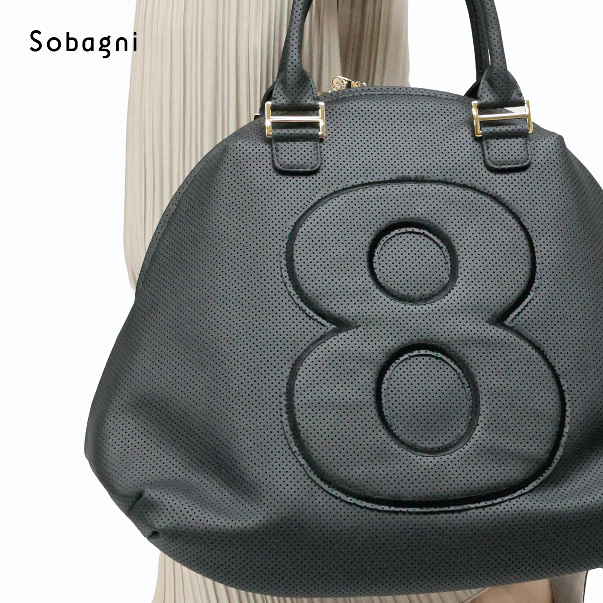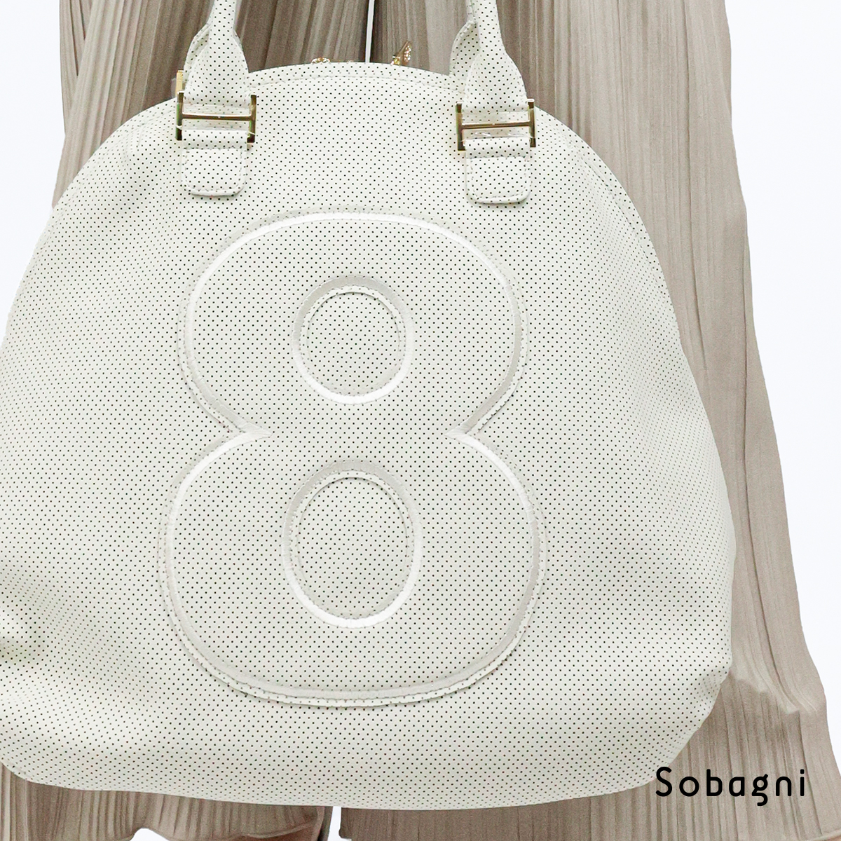 シンプル・ベーシックにこだわったデザインとカラー、パンチングが立体感を生み、8部分も同素材のワッペンでさりげないアクセントに。