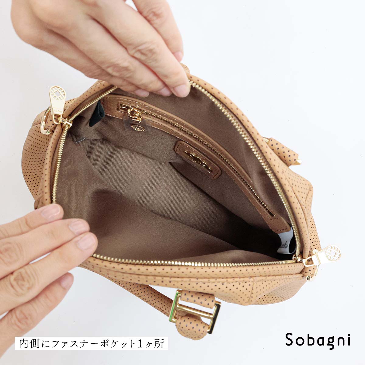 取り外し可能なショルダーストラップ付属で2WAY仕様、小ぶりなサイズ感ながらしっかりとマチもあるので収納も十分。