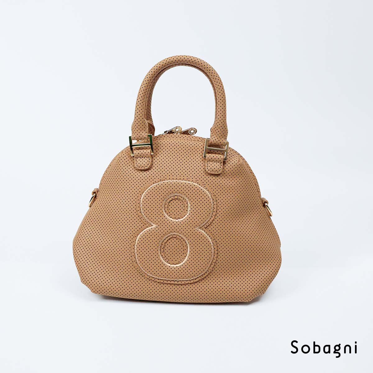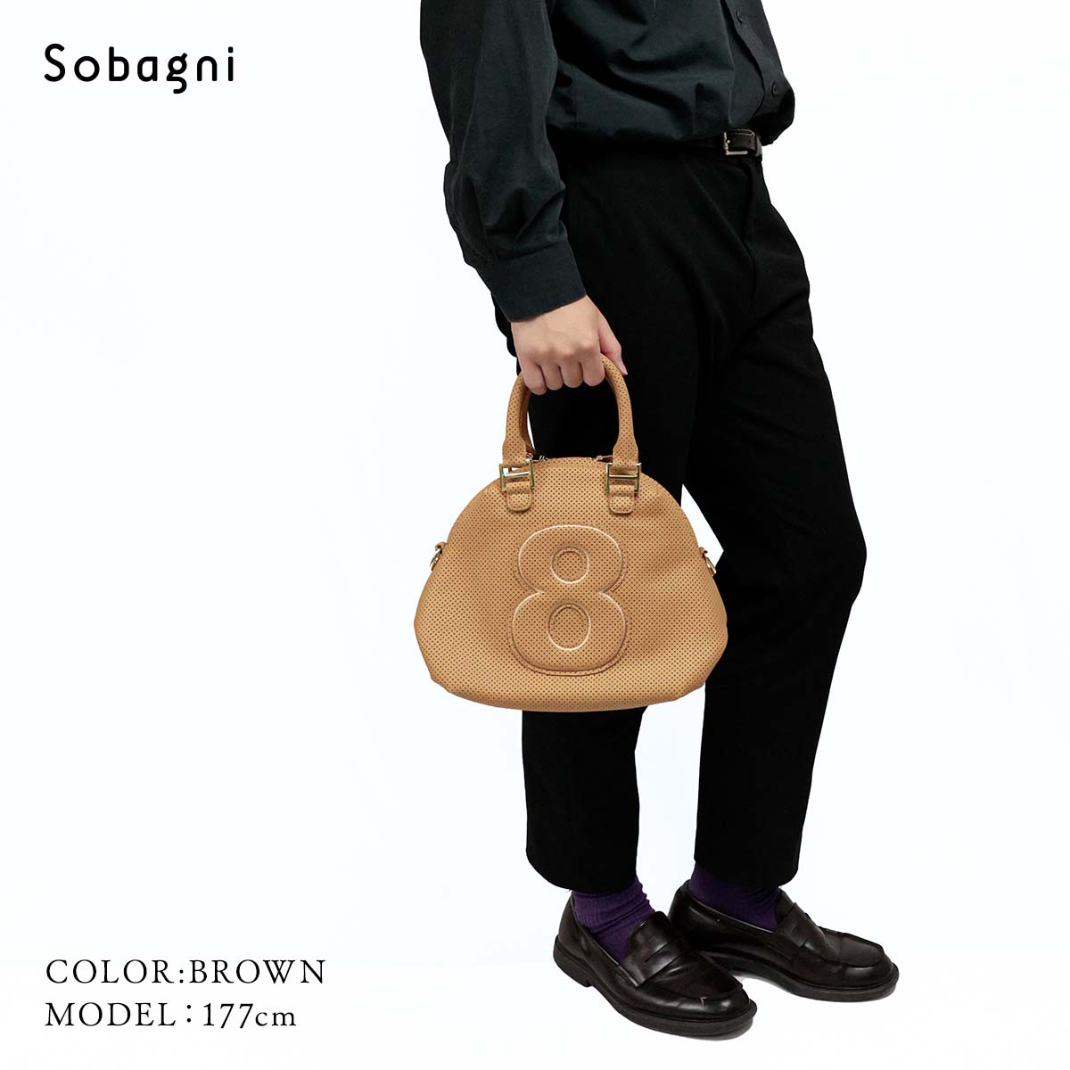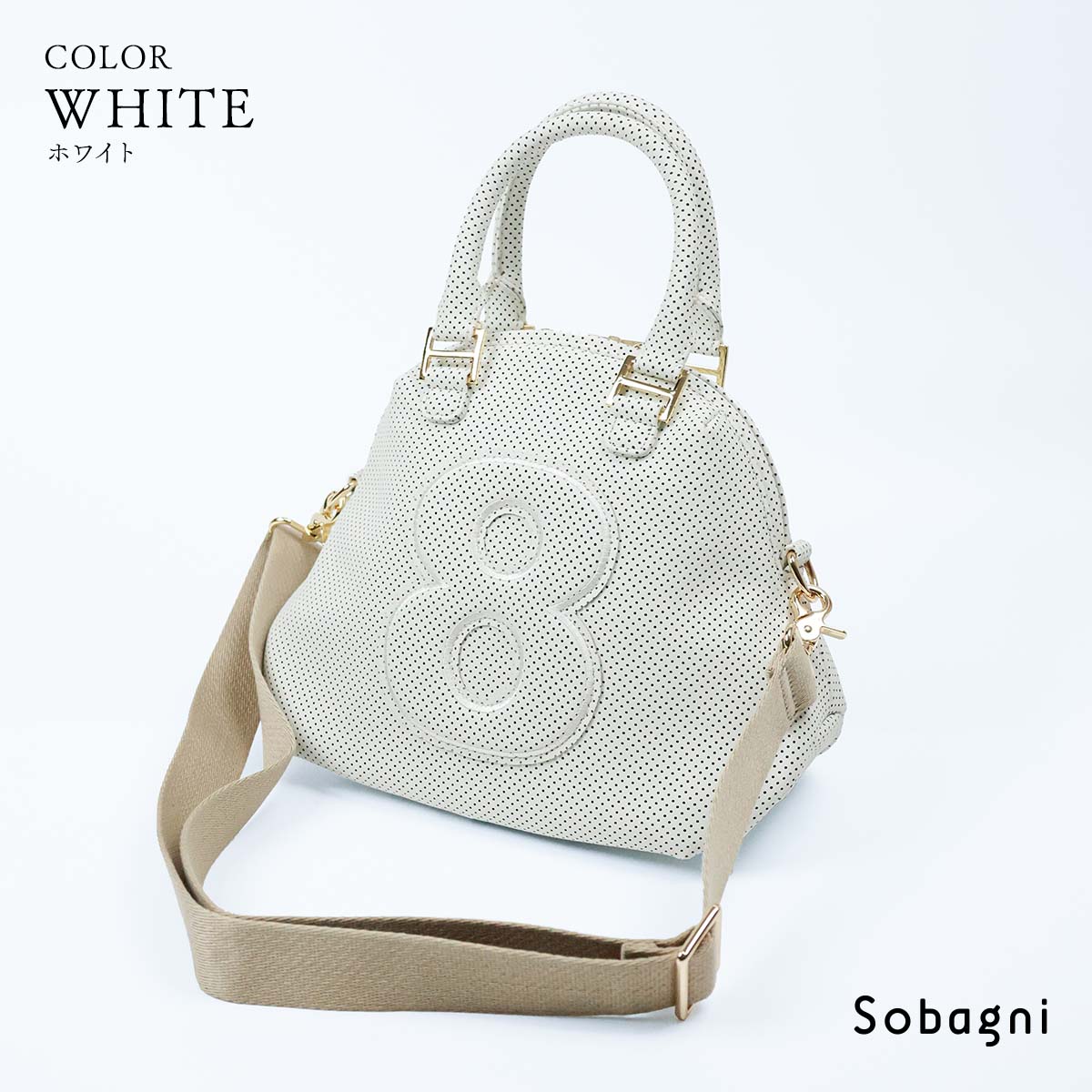 シンプル・ベーシックにこだわったデザインとカラー、パンチングが立体感を生み、8部分も同素材のワッペンで配置、カジュアルすぎないリッチ感溢れるスタイルを演出。