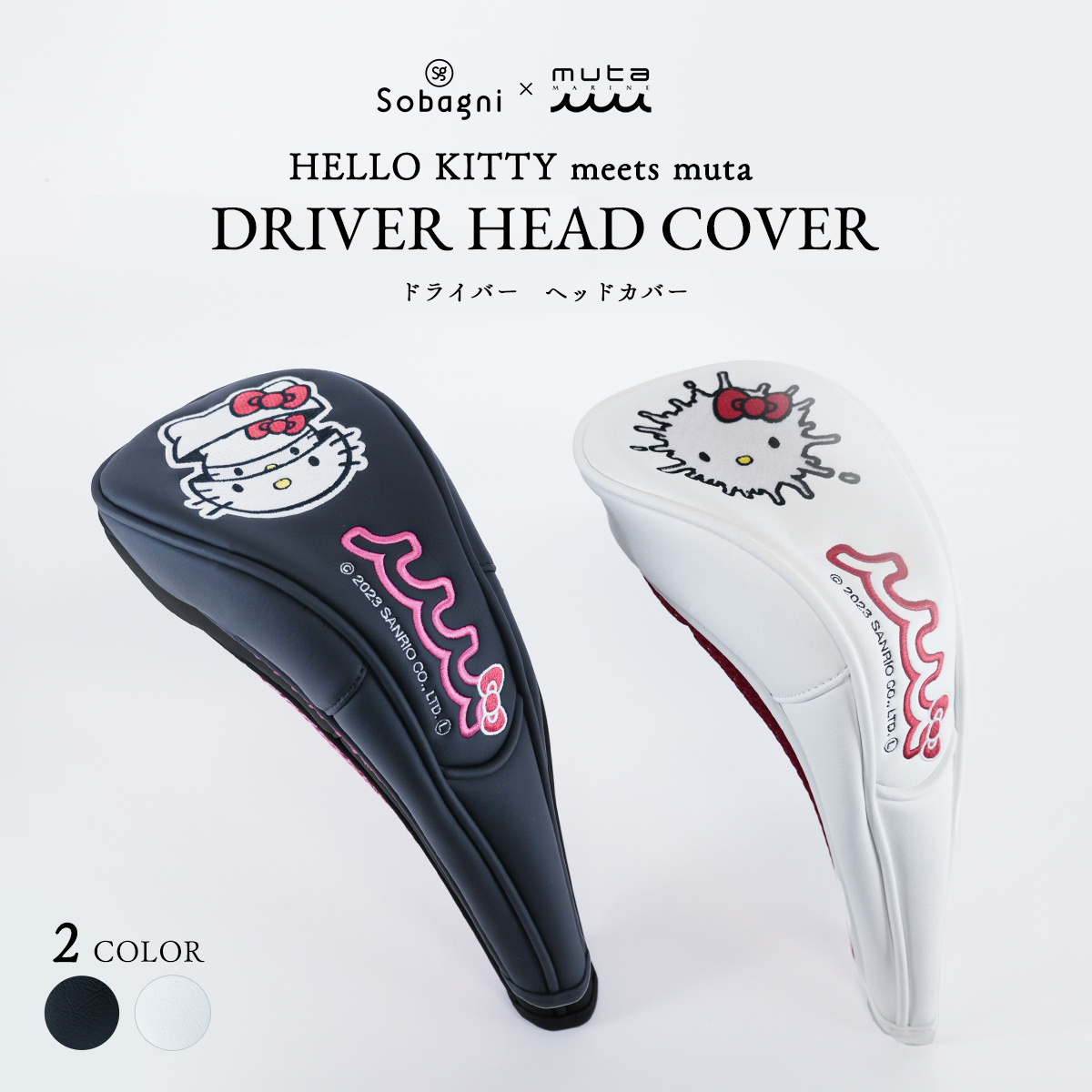 muta marine ムータ HELLO KITTY ドライバー用 ヘッドカバー continua 国産エシカル合皮 メンズ レディース 防水 撥水 おしゃれ 合皮ブラック ホワイト ヴィーガン