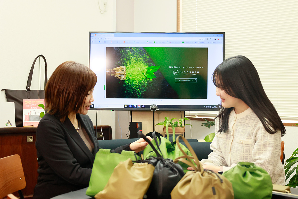 プロジェクトメンバーである大学生がSobagniのオフィスを訪れ、静岡茶から生まれた『Chakara』について説明を受ける様子や、軽くて丈夫なエシカル素材でできたバッグ・雑貨を選ぶ様子などが紹介されます。ぜひ番組をご覧ください。