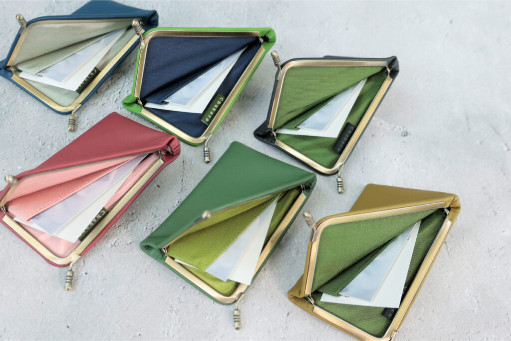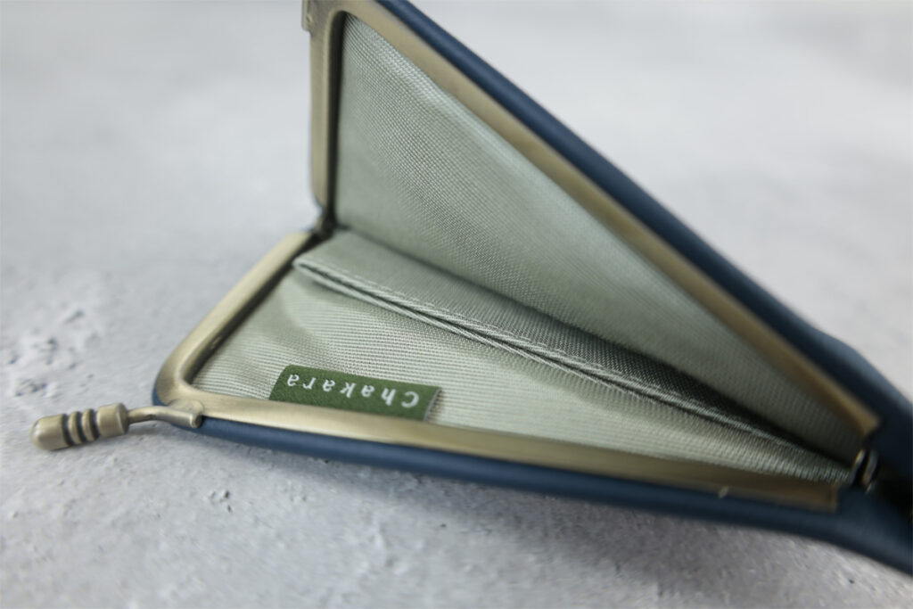 出し入れしやすいがま口を採用。薄いので持ち運びにも便利。