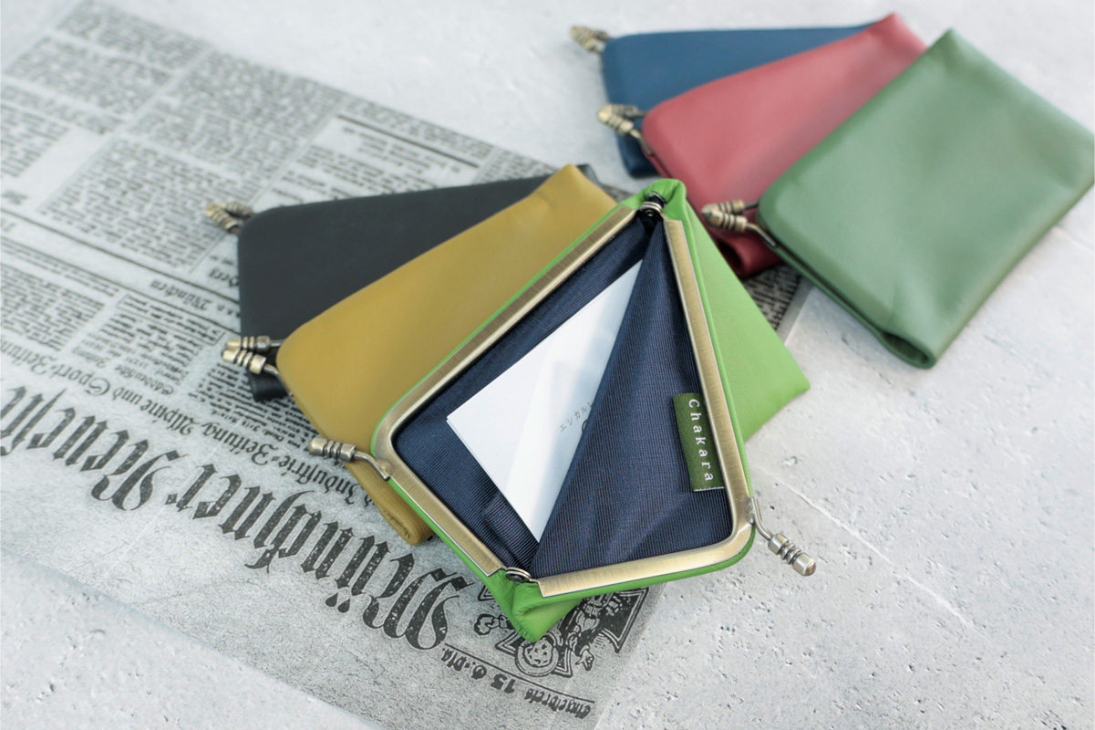 出し入れしやすいがま口を採用。薄いので持ち運びにも便利。