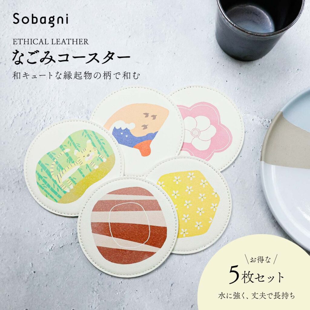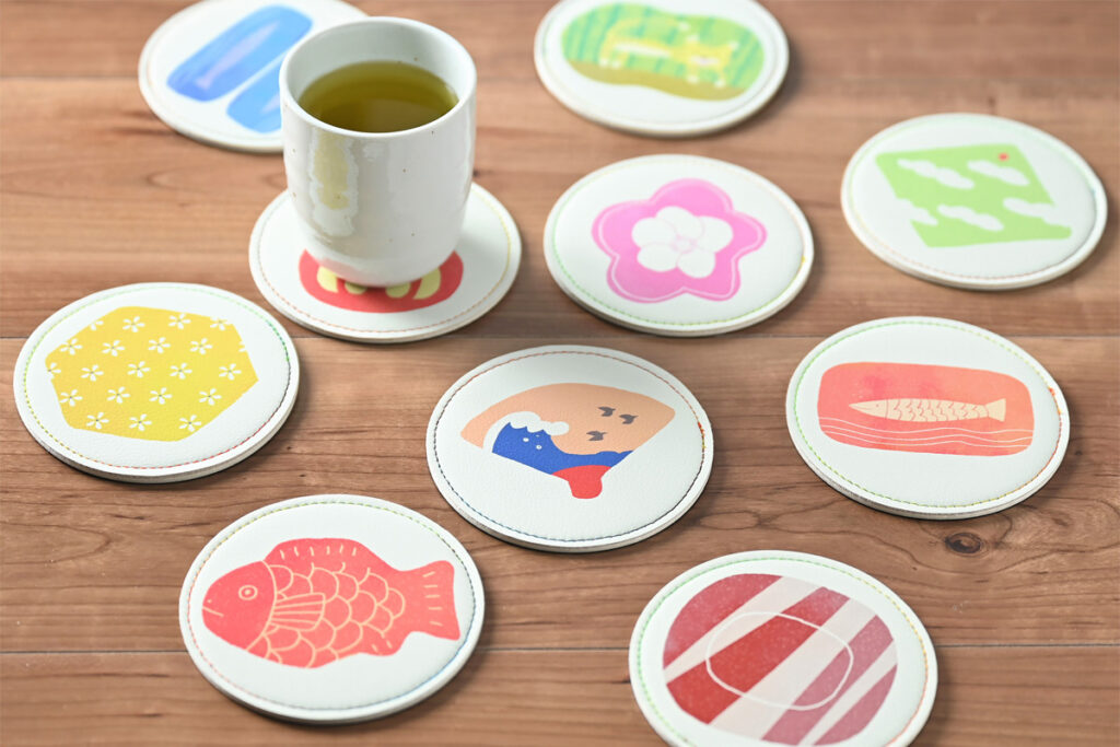 なごみコースターには「だるまさん」「めでたい」「紅白梅」など、縁起がよく日本らいしさが感じられるイラストもあるので、この時期には特におすすめアイテムです。