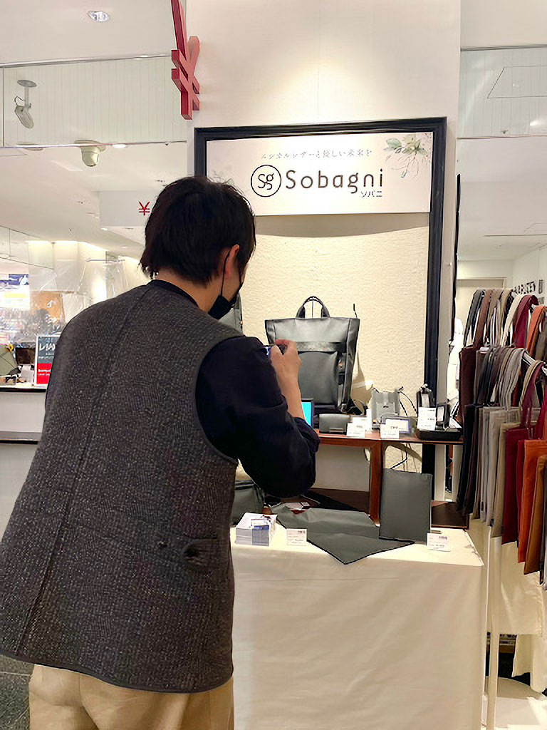 ECでは伝えきれないエシカルレザーの質感の良さを体感したり、持った時の「軽っ!」という感動だったり、