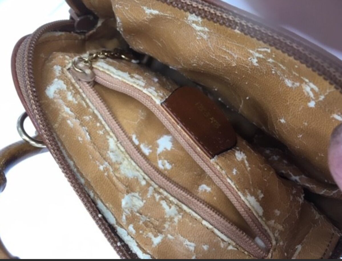 久しぶりにクロゼットから出したバッグがボロボロにはがれてしまって使えない!