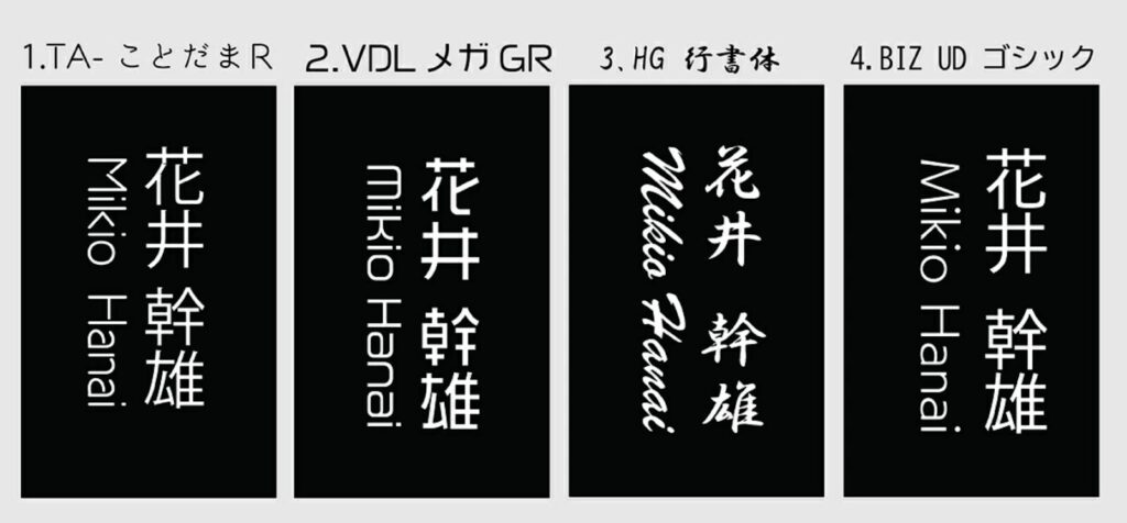 書体は以下の4種類からお選びいただけます(レイアウトは変更できません)。
