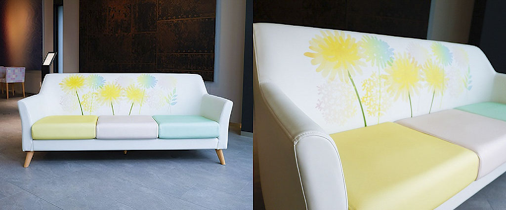 ちなみに…このチェアも次に紹介するソファも、企画・プリントデザインは、ローランドDG様の広報部の方が担当してくださいました。