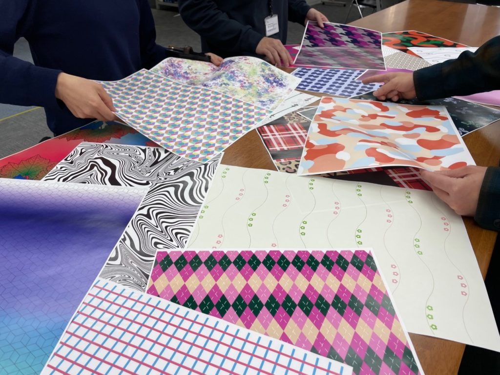 持てば気持ちが明るく、ついついお出掛けしたくなっちゃう傑作の5柄は学生がデザインしました。