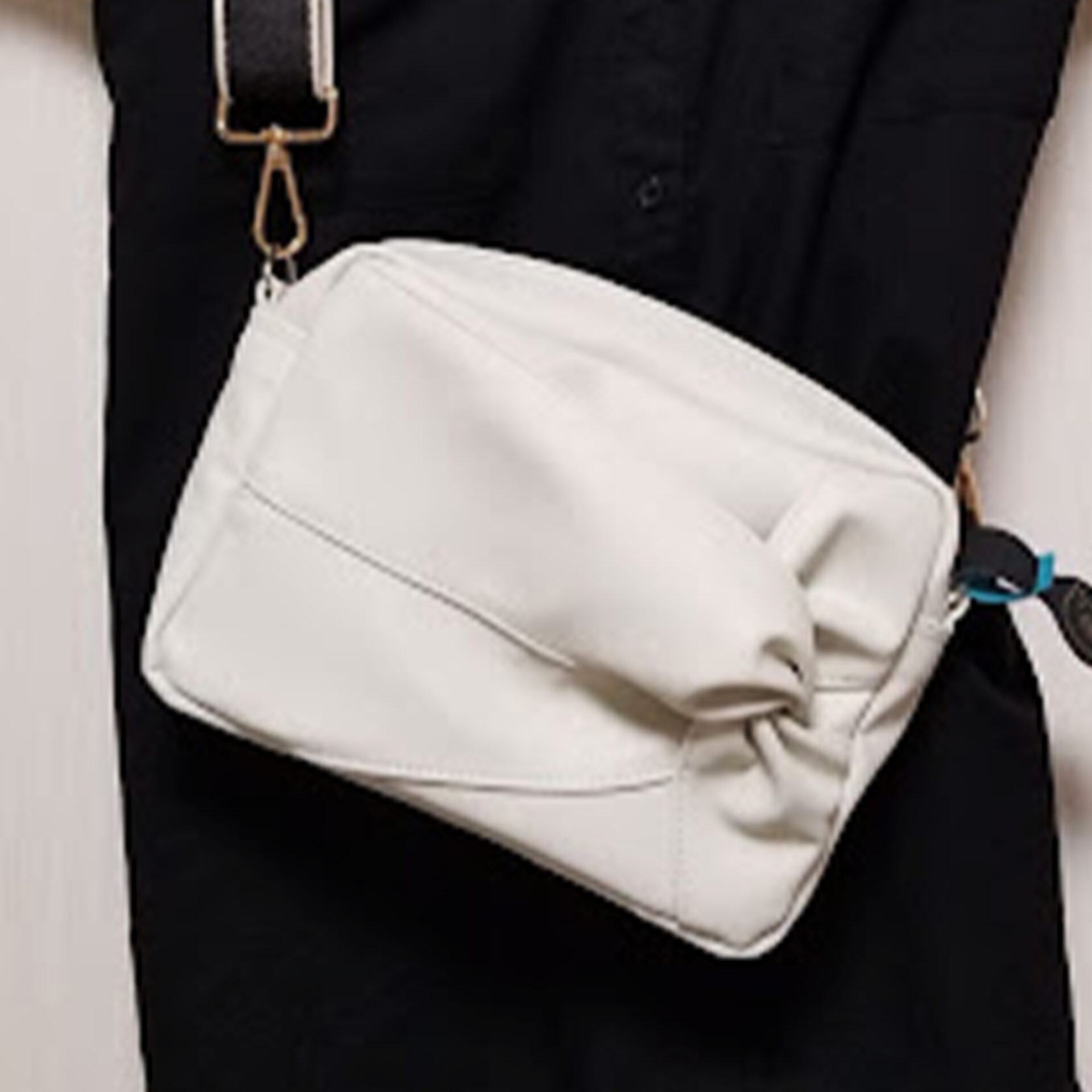 画像にありますようにショルダーベルトは既製品ですが、私が求めていた物ができました。ホワイト系のバッグはどんな色にも合うのと真っ黒のファッションに合わせても差し色になります。