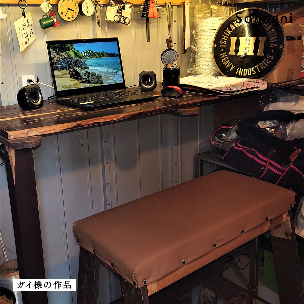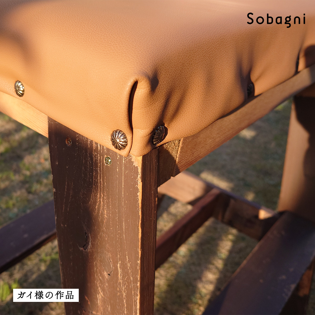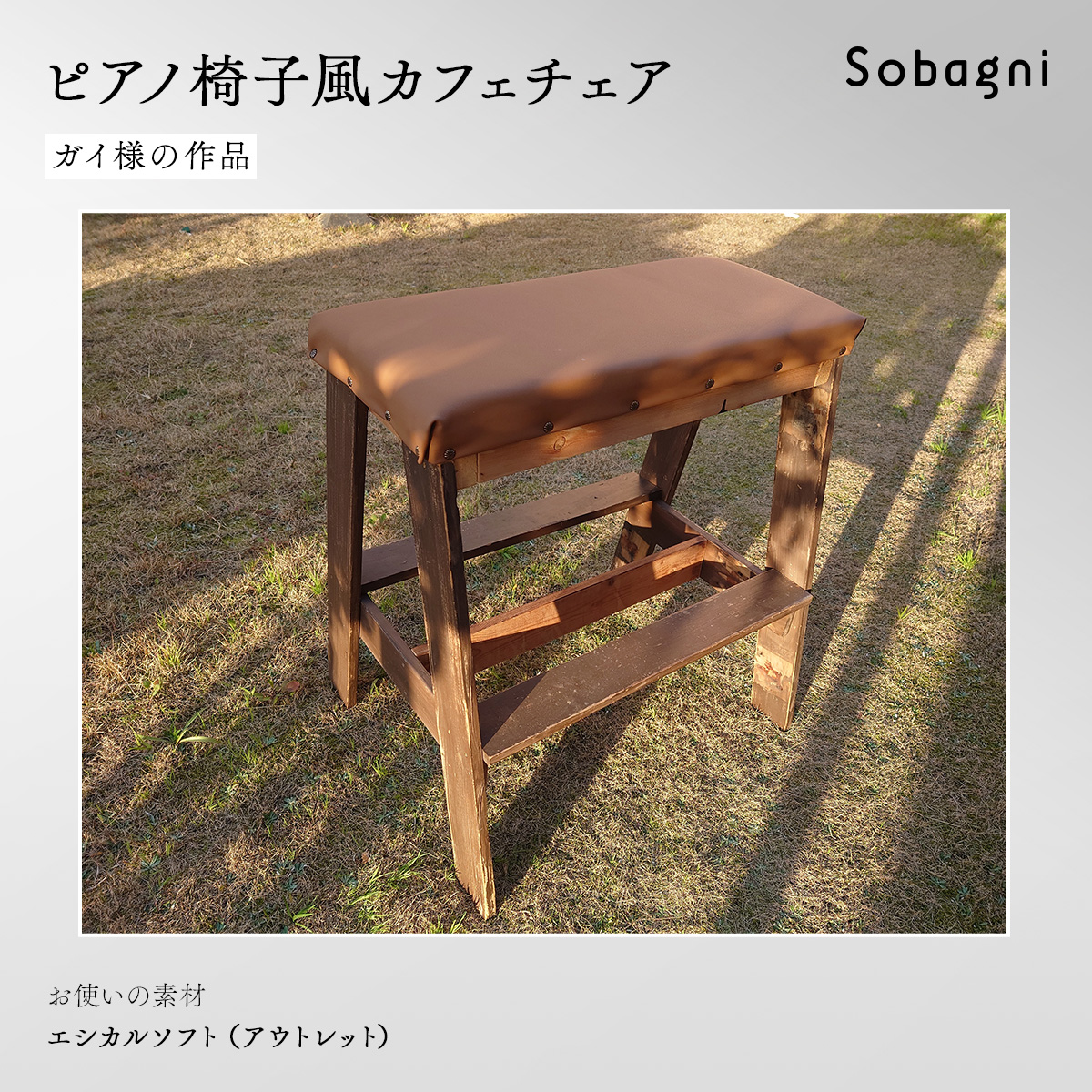 お作りになった椅子は、ピアノ用の椅子のように横に長く座り心地がよく、シックでかっこいいものを目指されていたため、Sobagniの素材の風合いの良さを生かして制作されました。